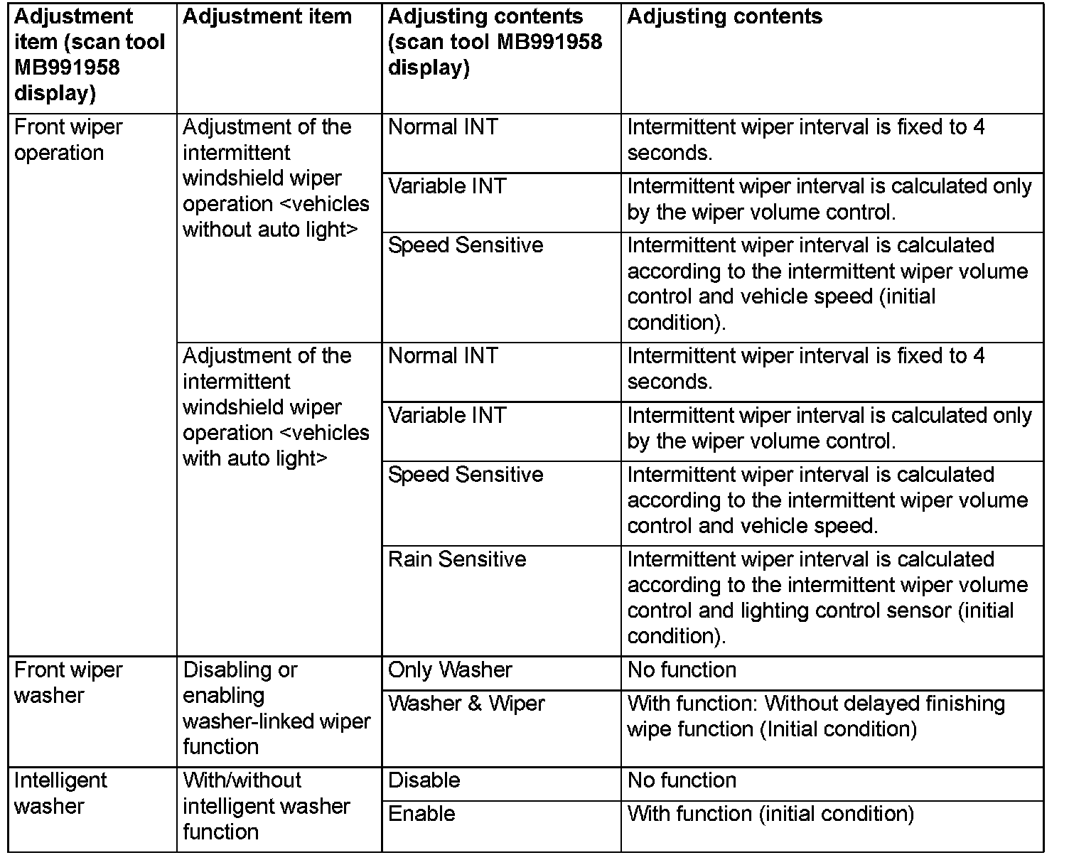 By operating the ETACS system or MMCS of scan tool MB991958, the following functions can be programmed. The programmed information is held even when the battery is disconnected.