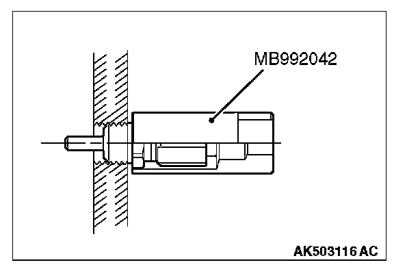 1. Drain engine coolant, then remove the engine coolant temperature sensor using the special tool MB992042 (engine coolant temperature sensor wrench).