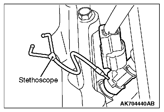 Using a stethoscope or long blade screwdriver, check the operation sound ("tick-tick-tick") of injectors during idling or during cranking. Check that as the engine speed increases, the frequency of the operating sound also increases.