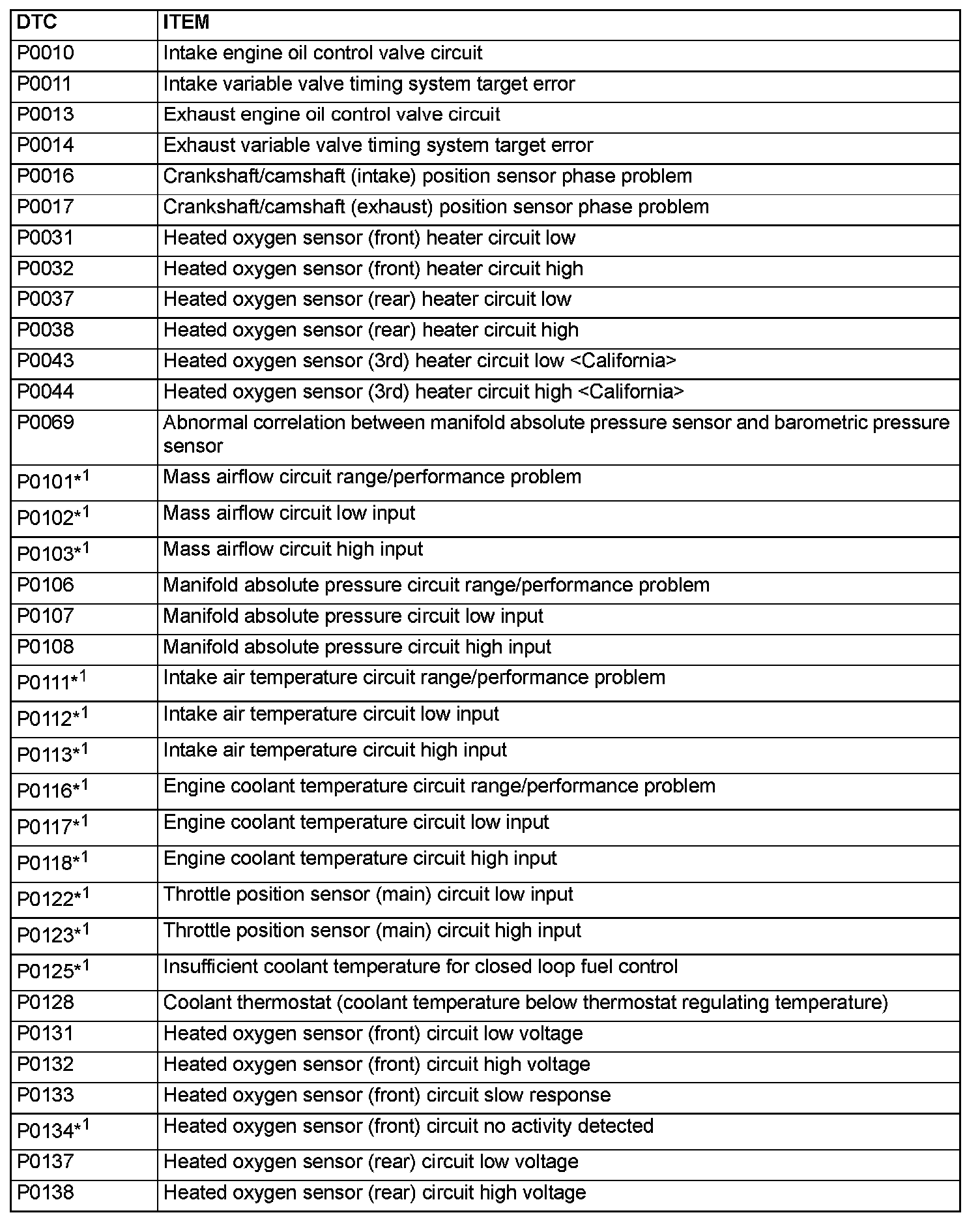 - The codes marked with a "*2" in the diagnosis code number column have the following two conditions for illuminating the Malfunction Indicator Lamp (SERVICE ENGINE SOON or Check Engine Lamp).