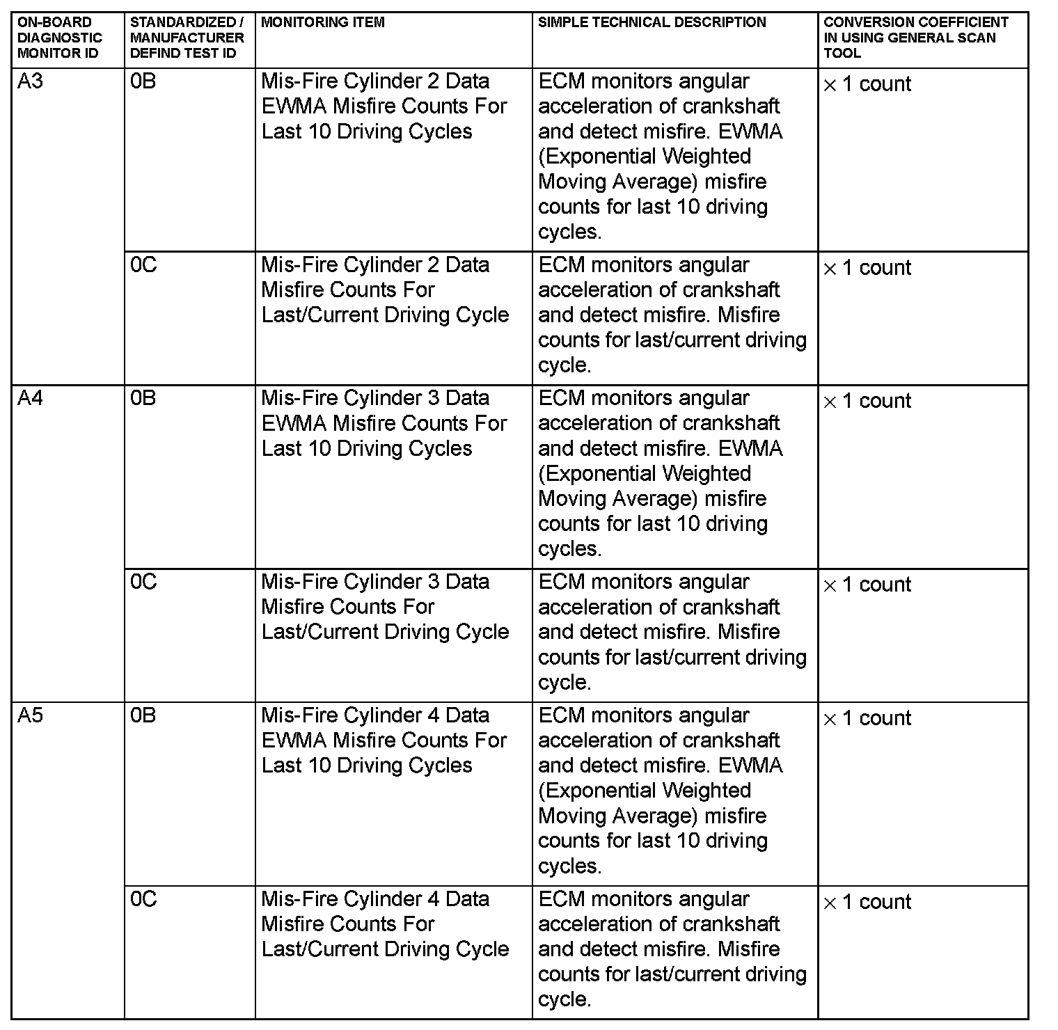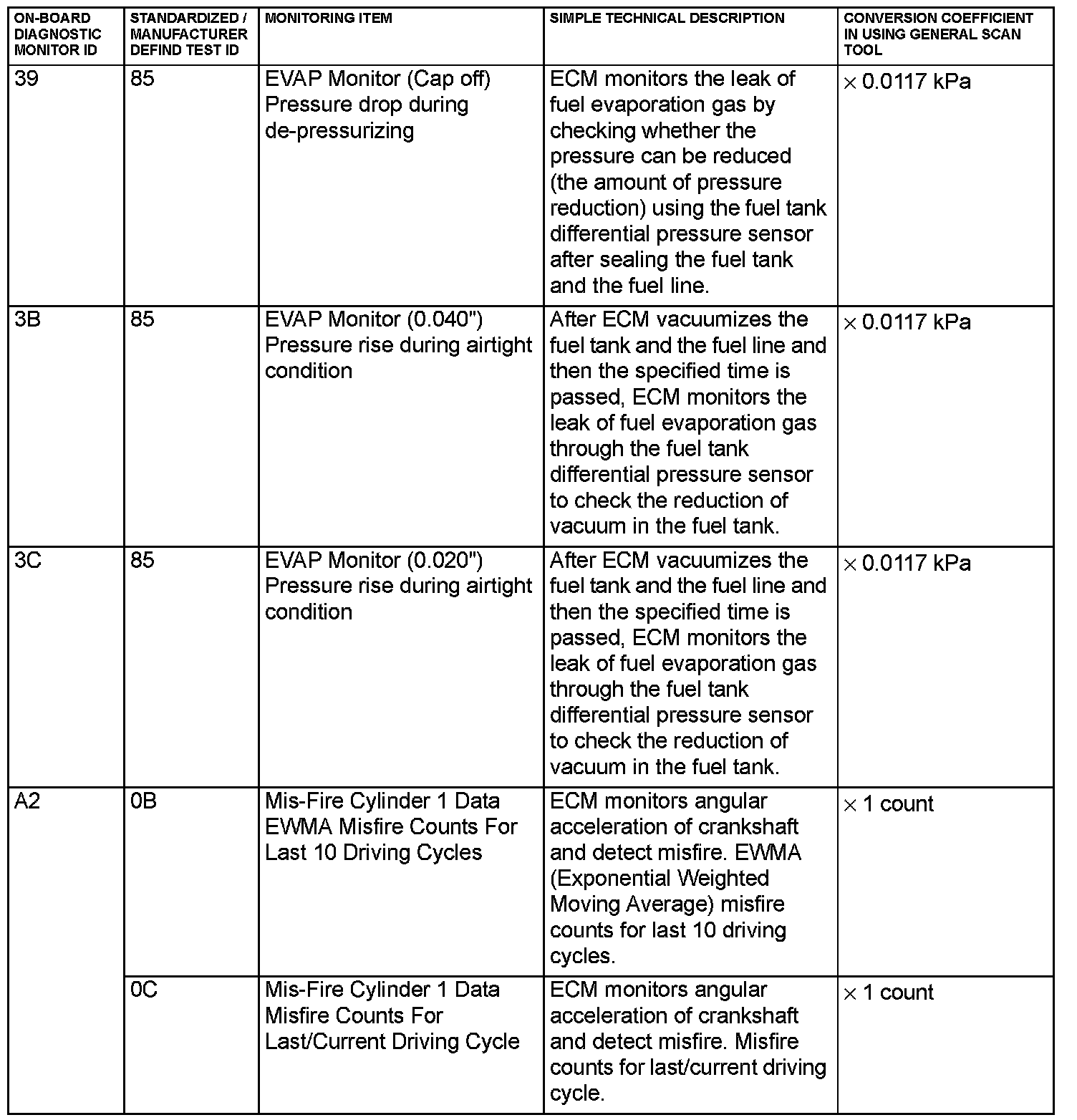 - When not finishing the monitor of the driving cycle for the request of On-Board Monitoring Test Request, the ECM outputs the stored latest monitor test result.