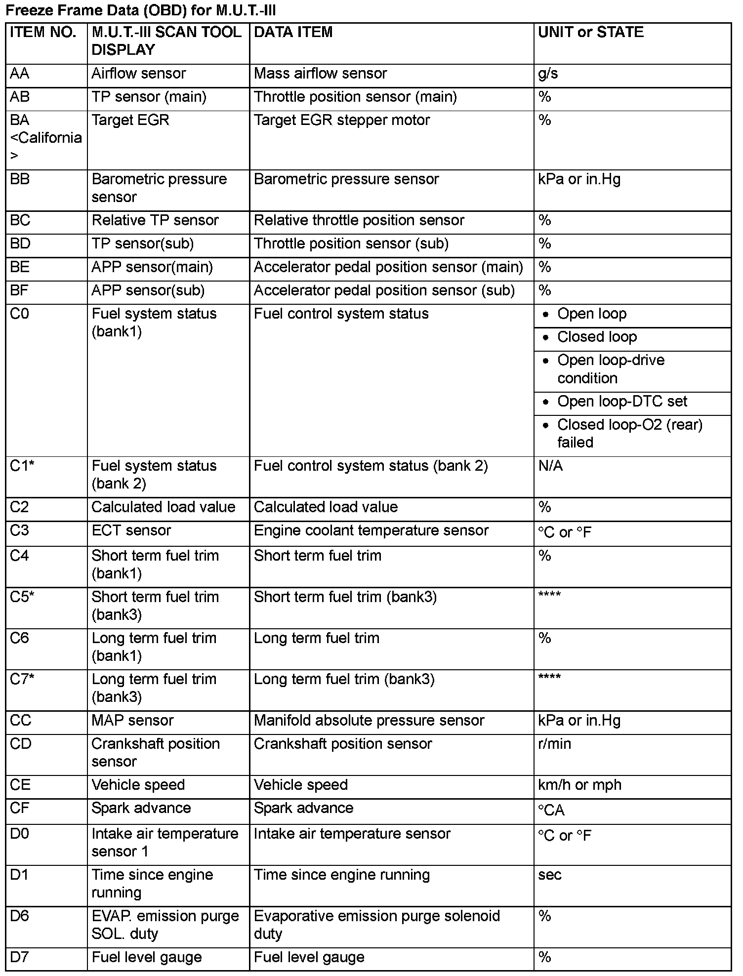 Freeze Frame Data (OBD) For M.U.T.-III (Part 1):