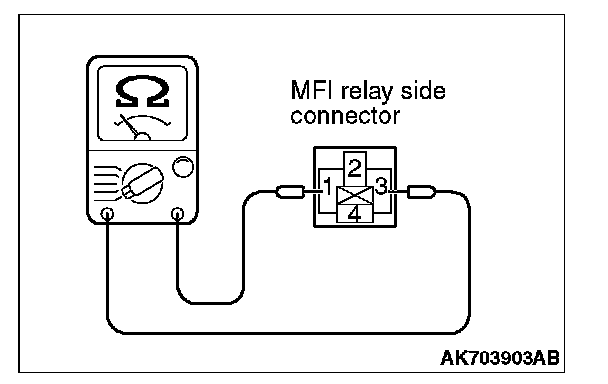 2. Check for continuity between the MFI relay terminals No. 1 and No. 3.
