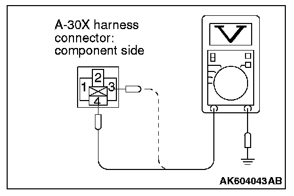 STEP 3. Measure the power supply voltage at MFI relay harness side connector A-30X.