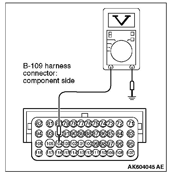 2. Measure the voltage between terminal No. 104 and ground.