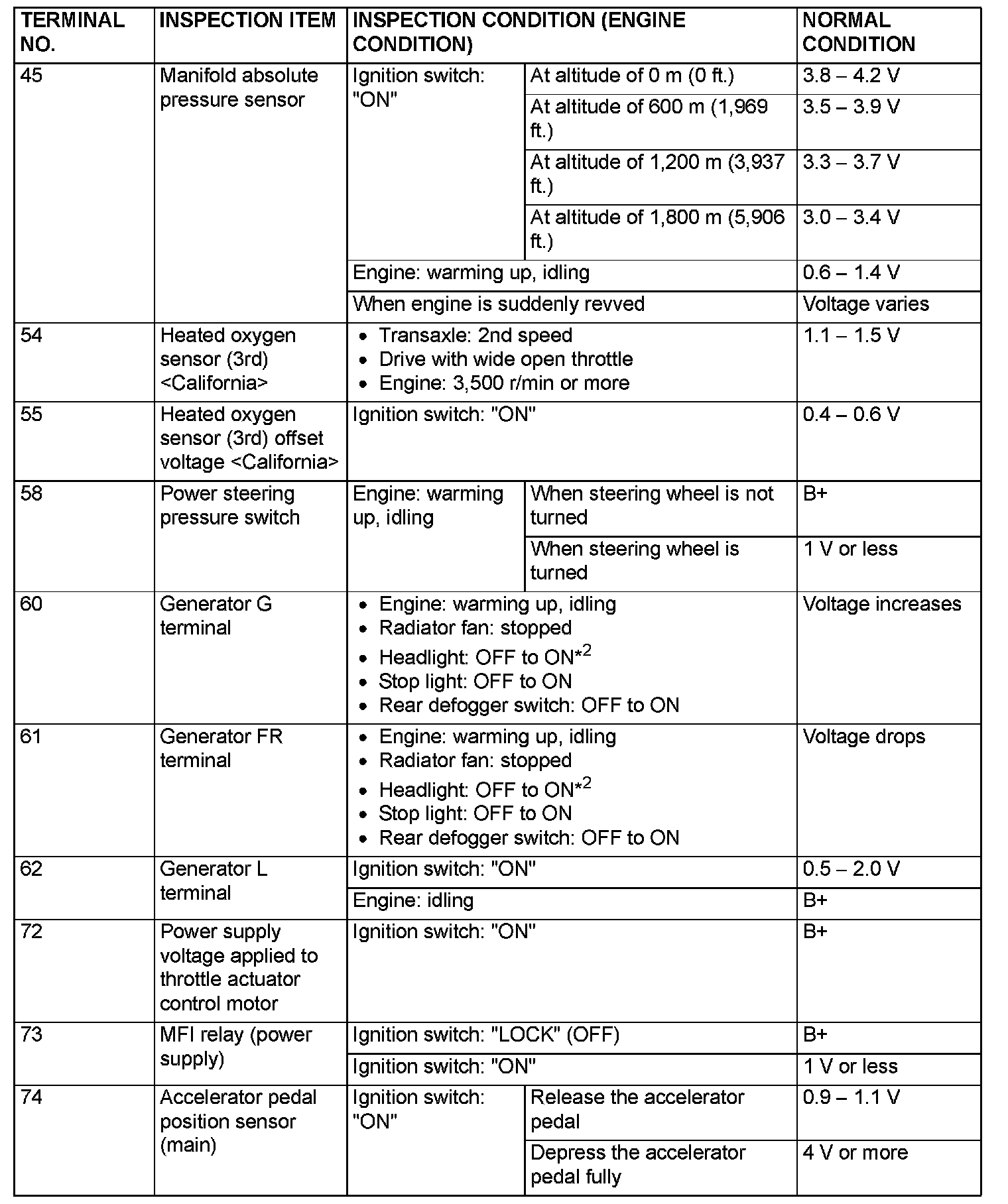 - *2: Vehicles for Canada, the headlight, taillight, etc. remain lit even when the lighting switch is in "OFF" position but is no problem for checks.