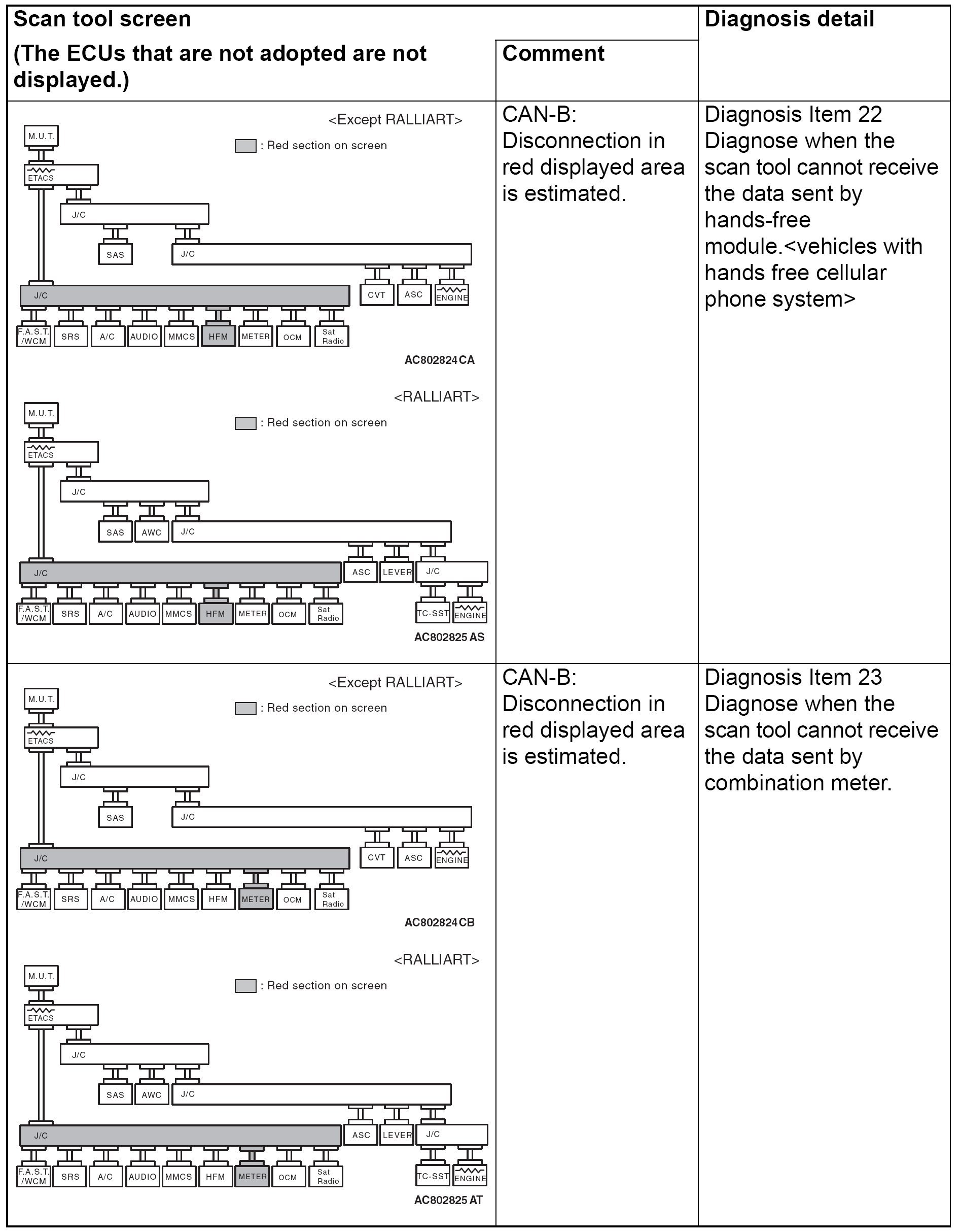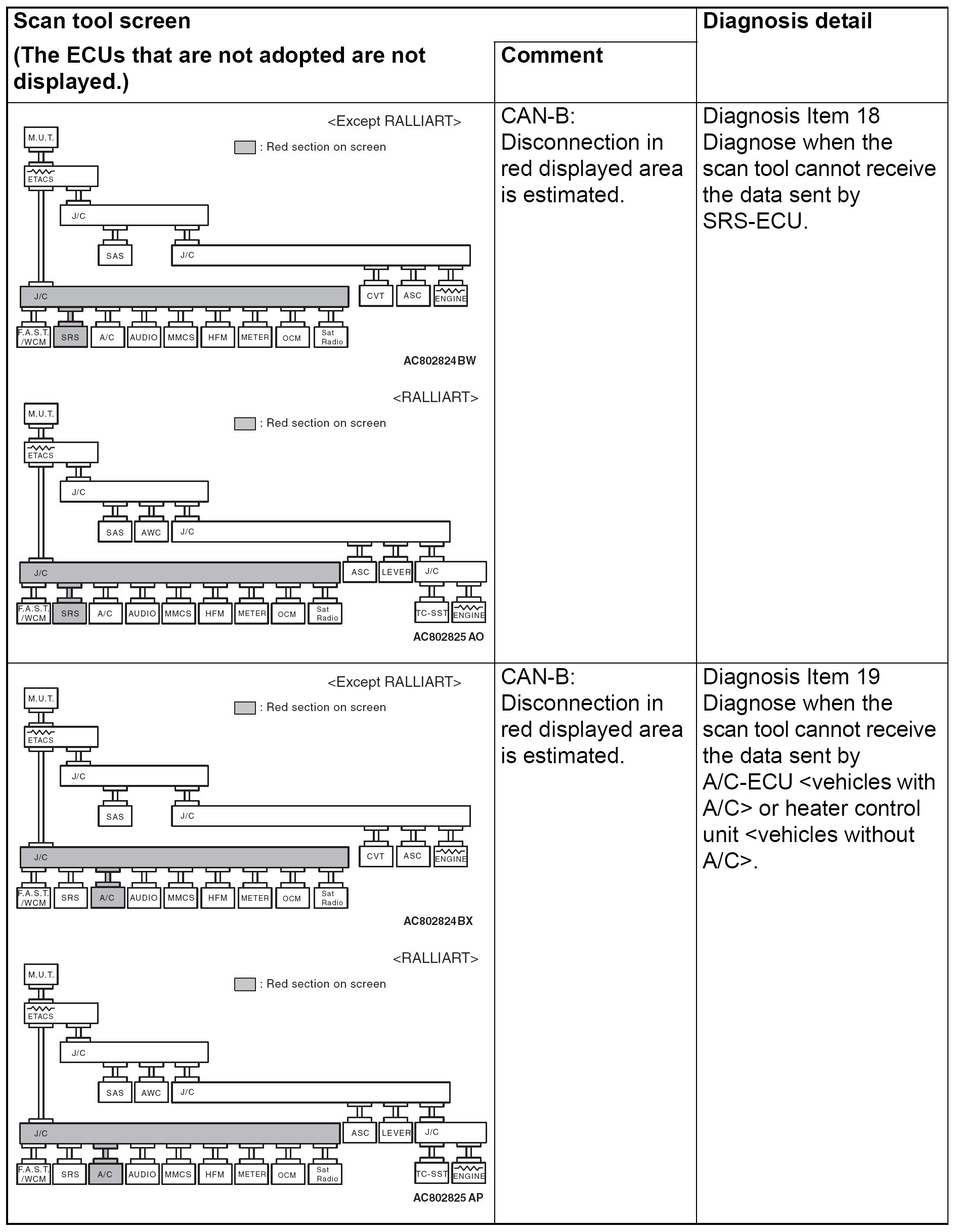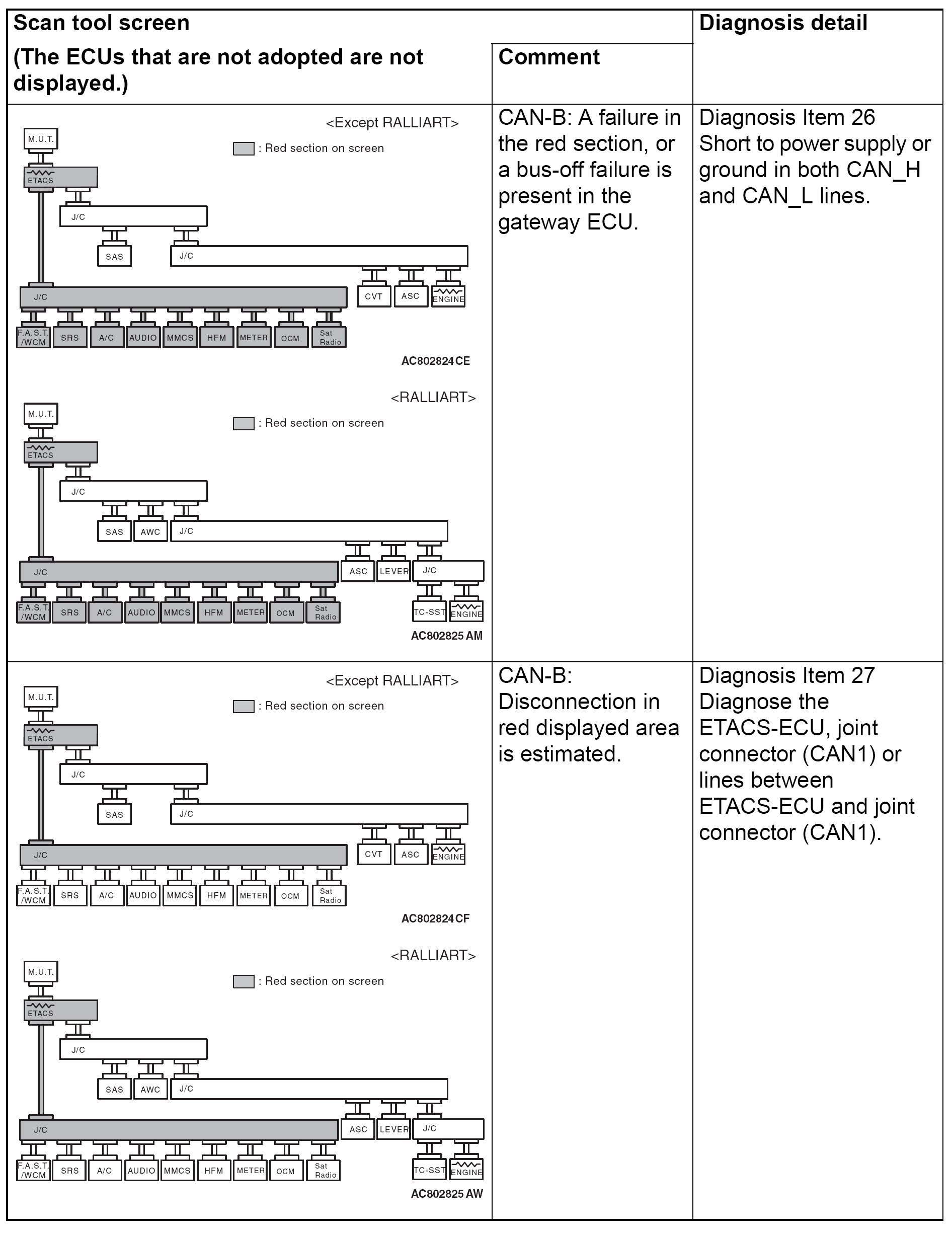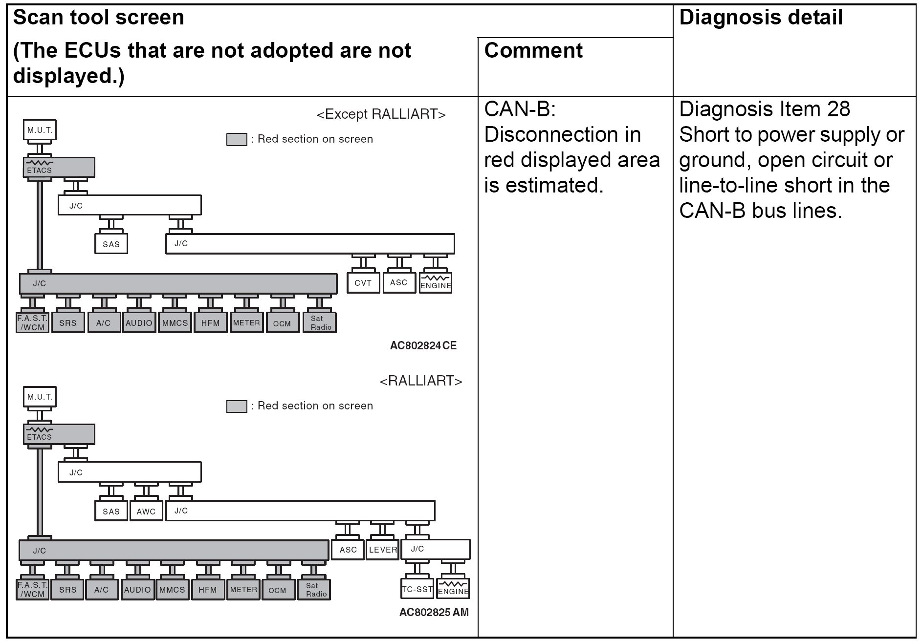 CAUTION: A diagnosis code may not also be set in the CAN-B lines under the conditions below. If no diagnosis code has been set due to electrical noise, confirm diagnosis item 28. Diagnostic Item 28