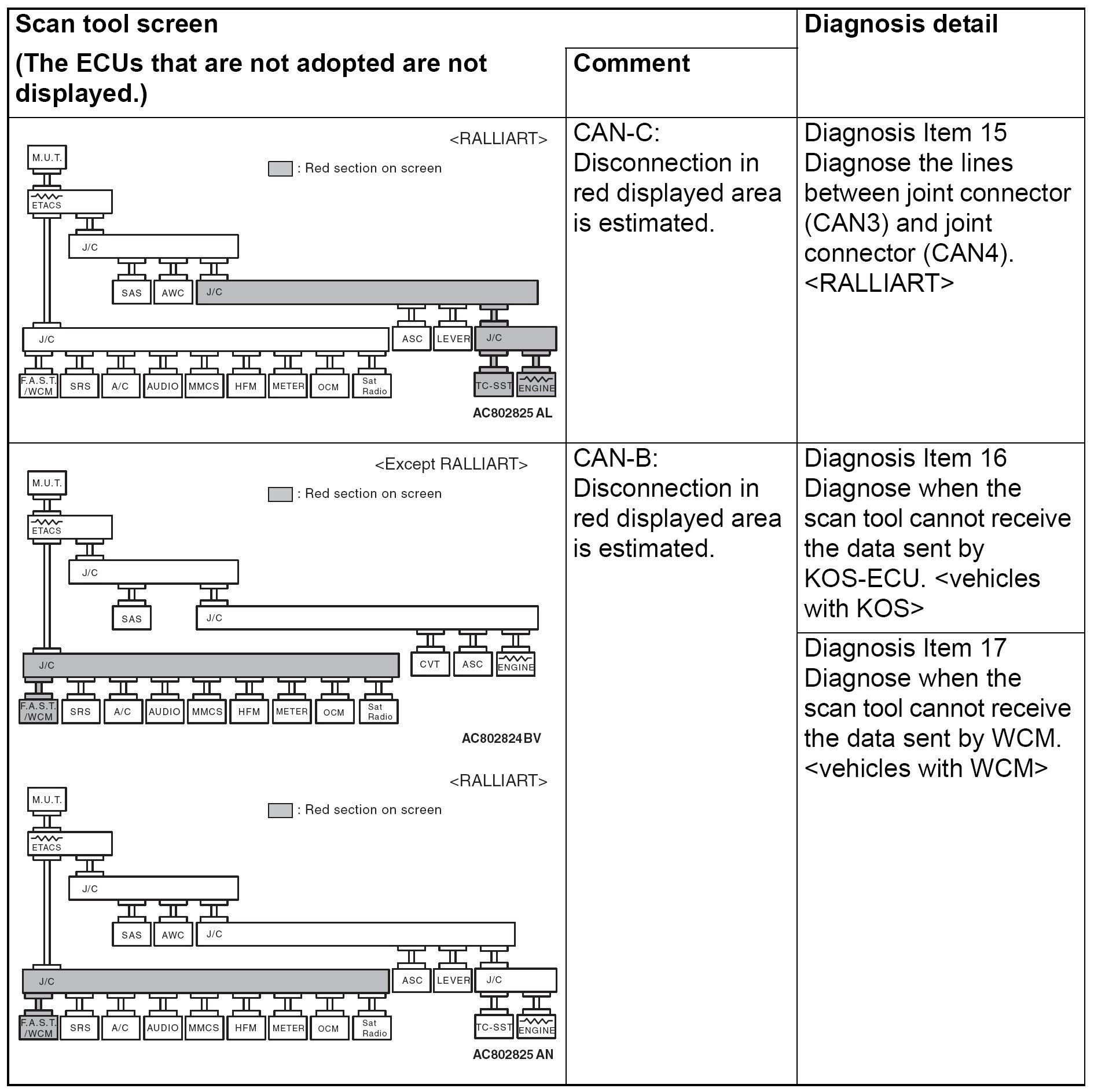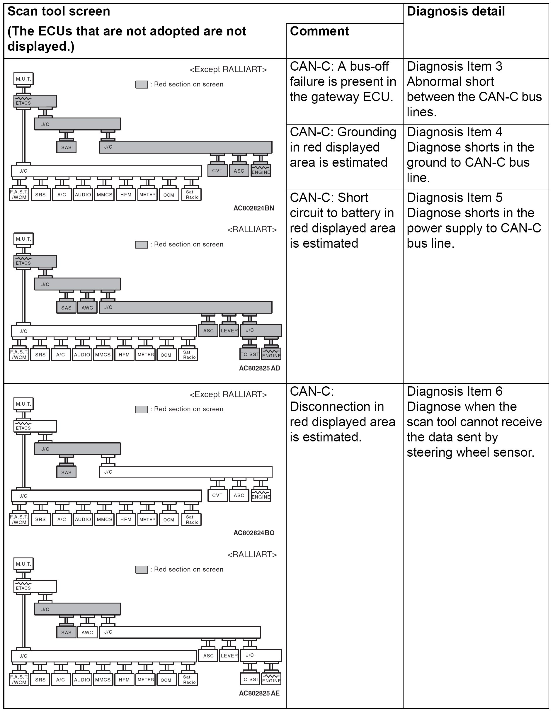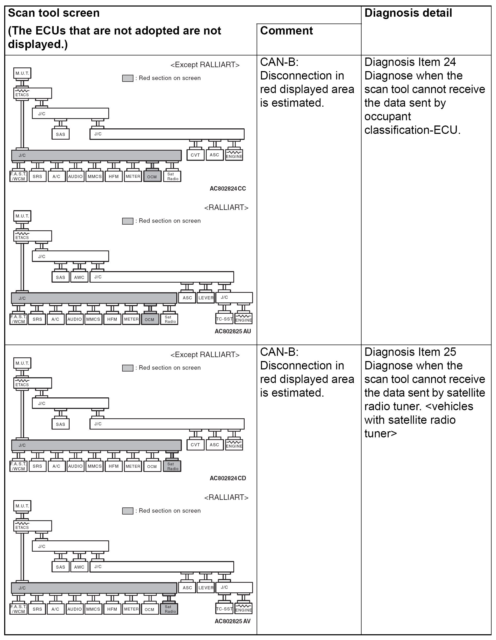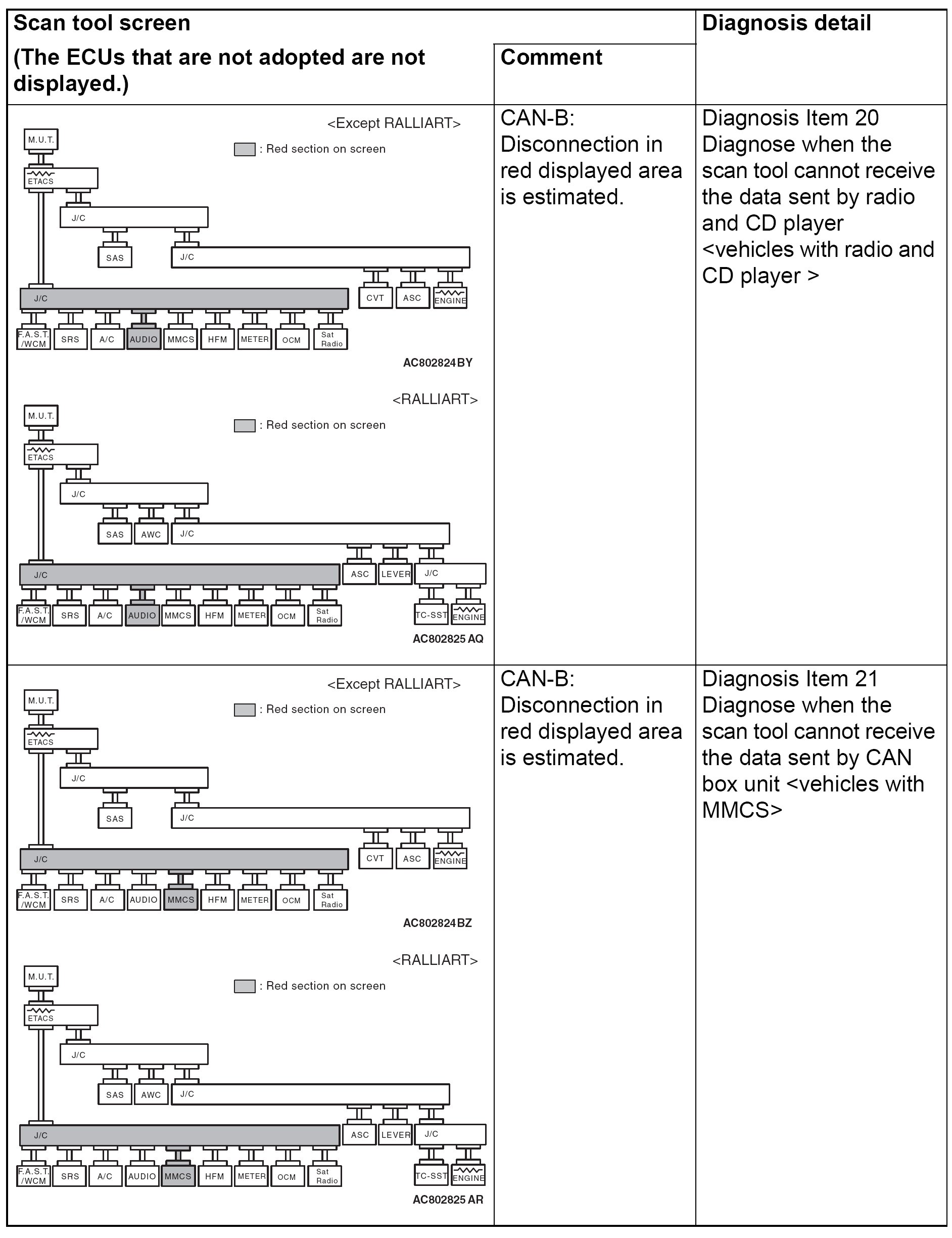 CAUTION: A diagnosis code may not also be set in the CAN-B lines under the conditions below. If no diagnosis code has been set due to electrical noise, confirm diagnosis item 28. Diagnostic Item 28