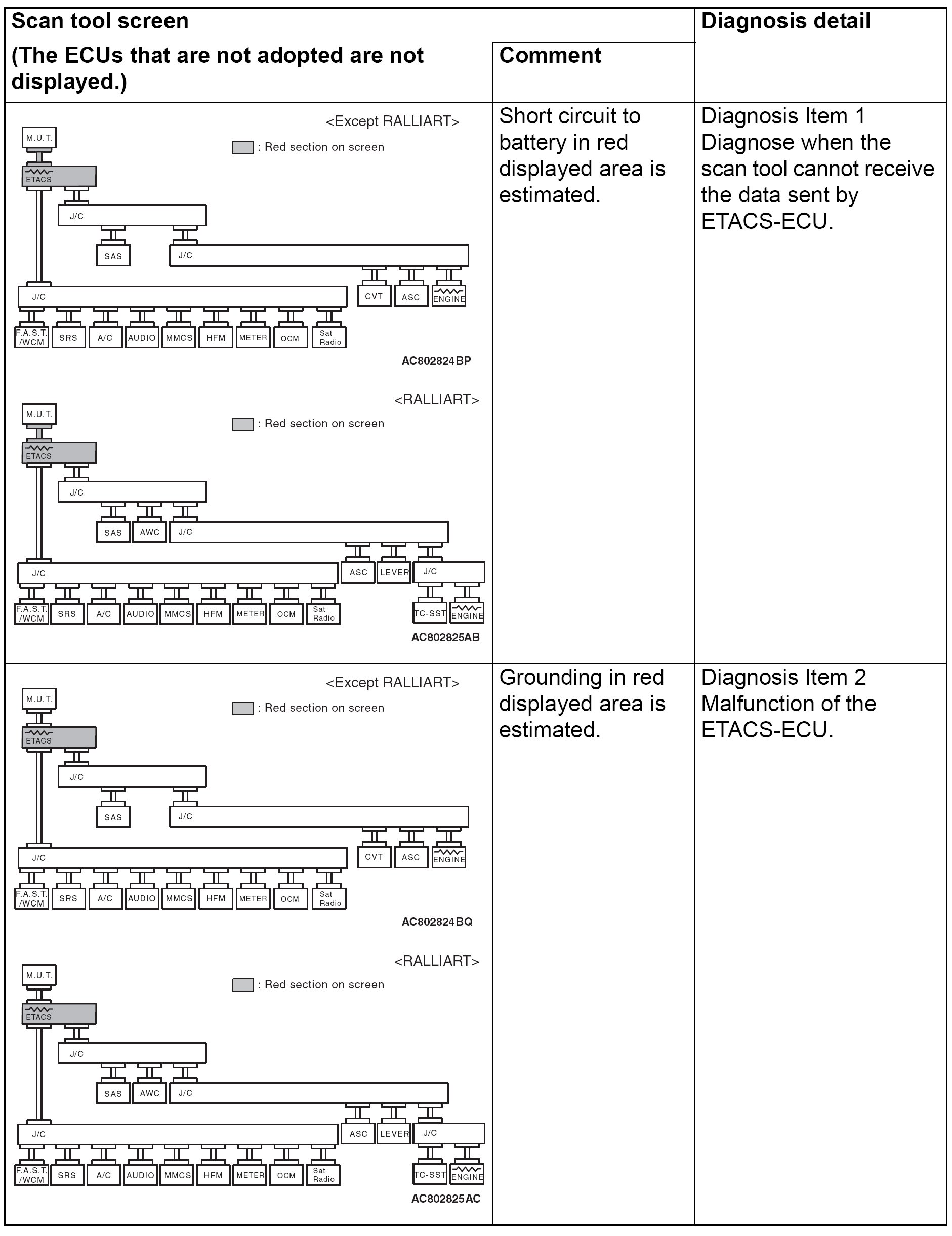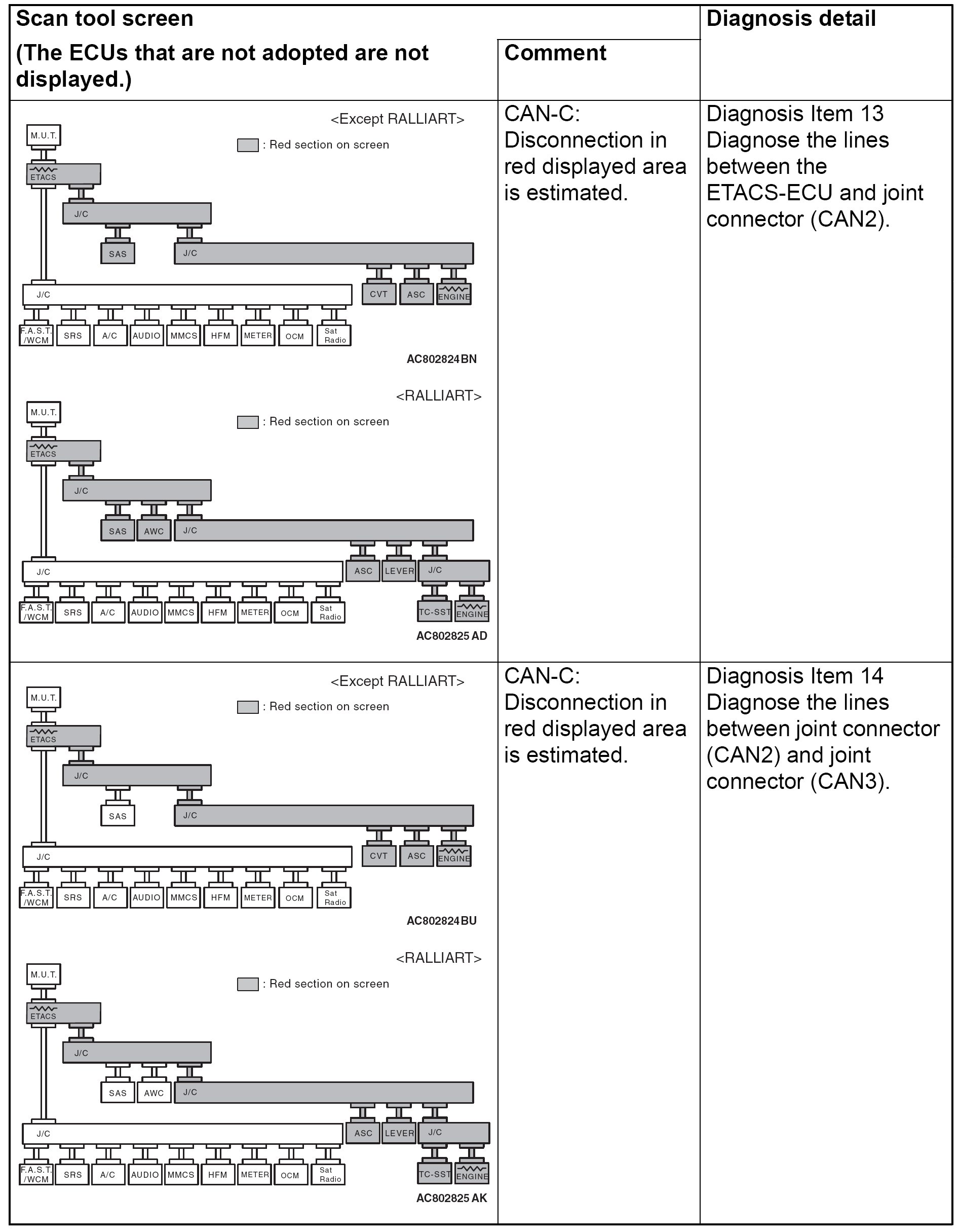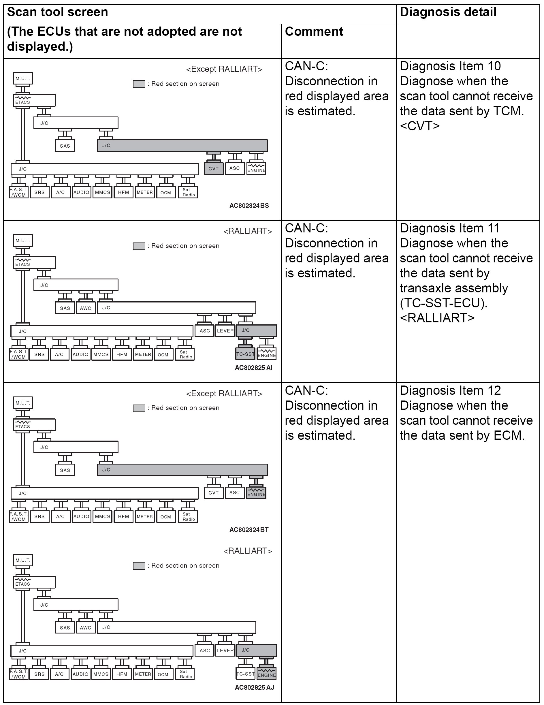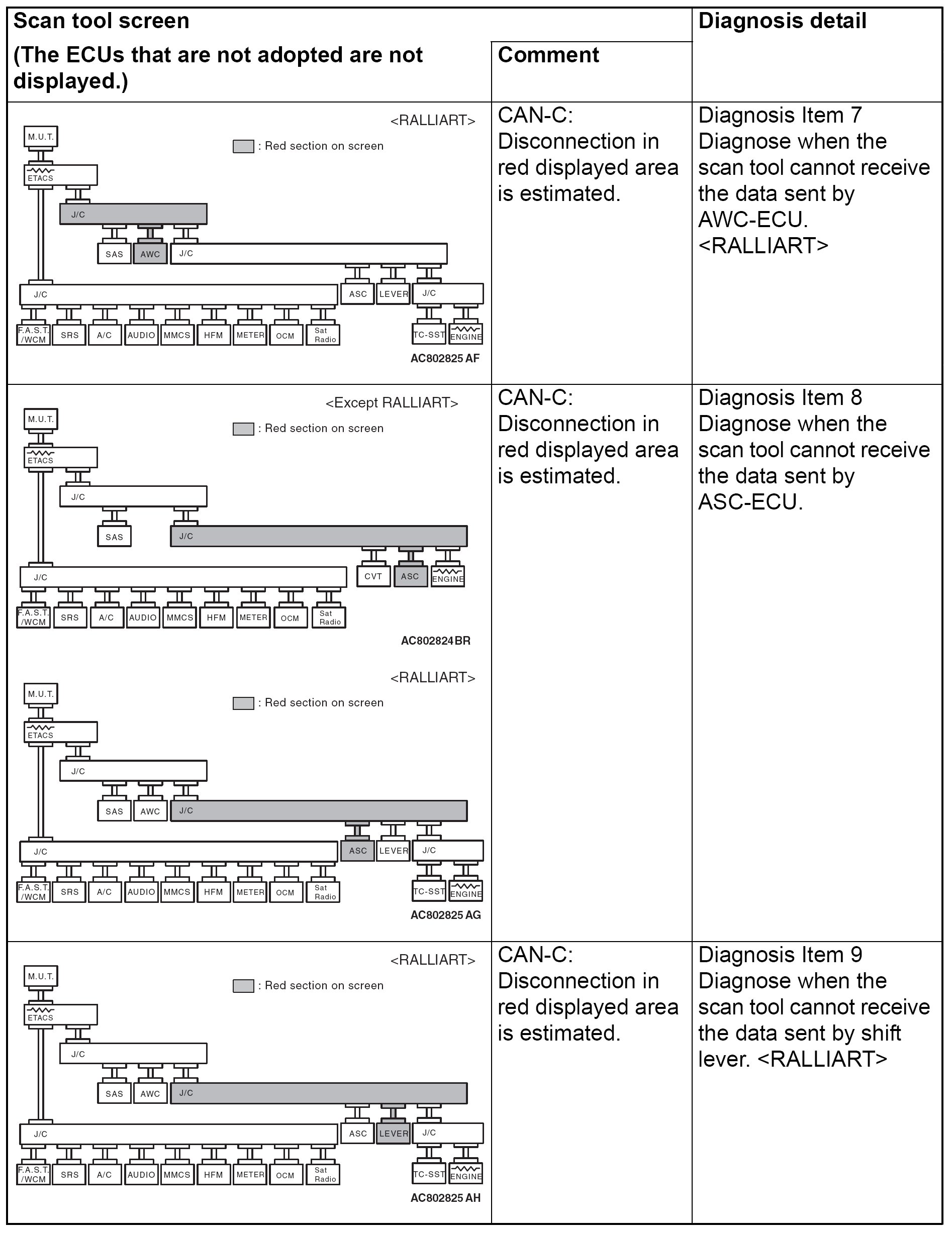 CAUTION: A diagnosis code may not also be set in the CAN-B lines under the conditions below. If no diagnosis code has been set due to electrical noise, confirm diagnosis item 28. Diagnostic Item 28