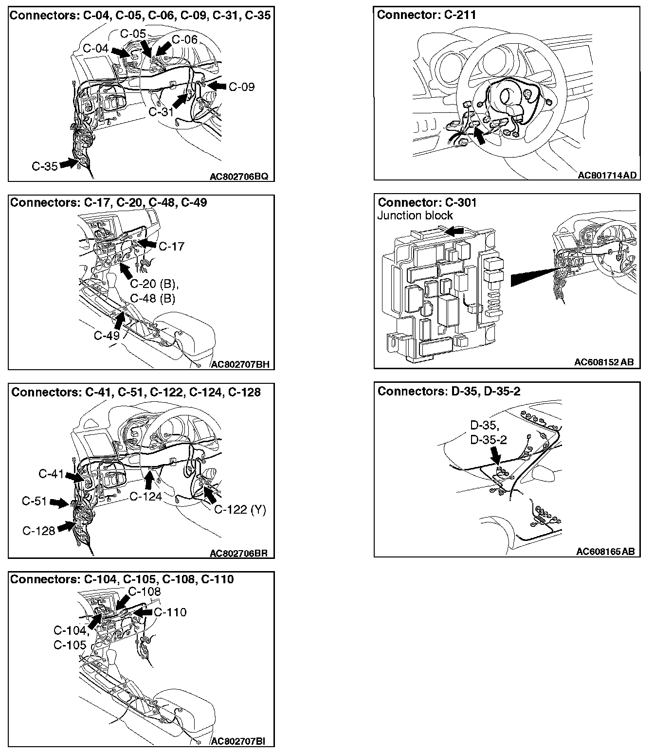 CAUTION: During diagnosis, a diagnosis code associated with another system may be set when the ignition switch is turned on with connector(s) disconnected. After completing the repair, confirm all systems for diagnosis code(s). If diagnosis code(s) are set, erase them all.