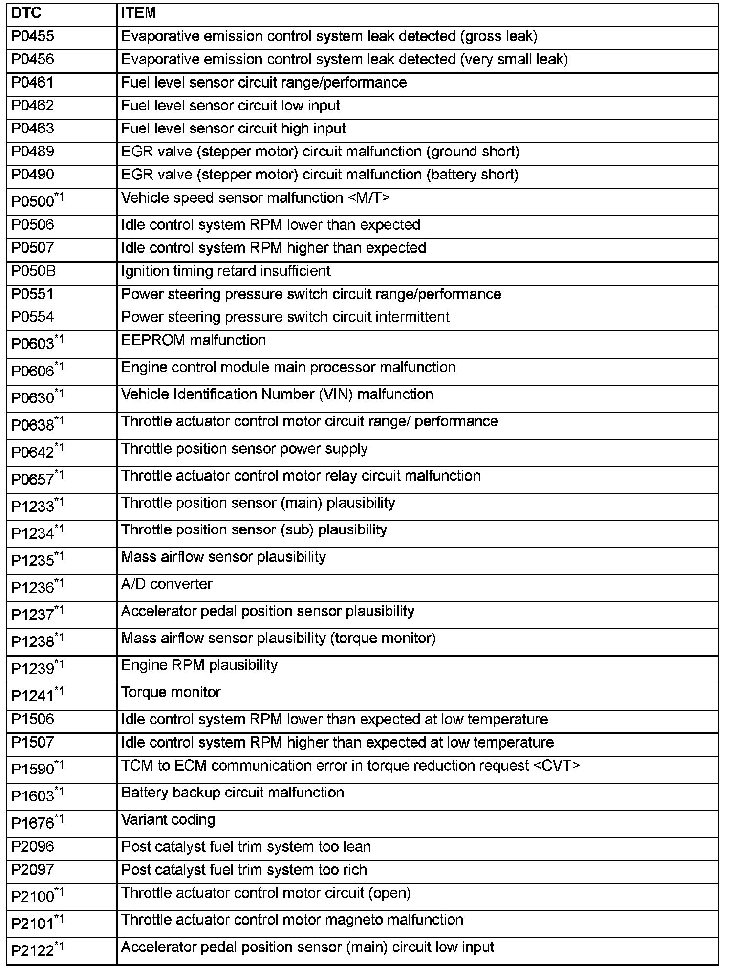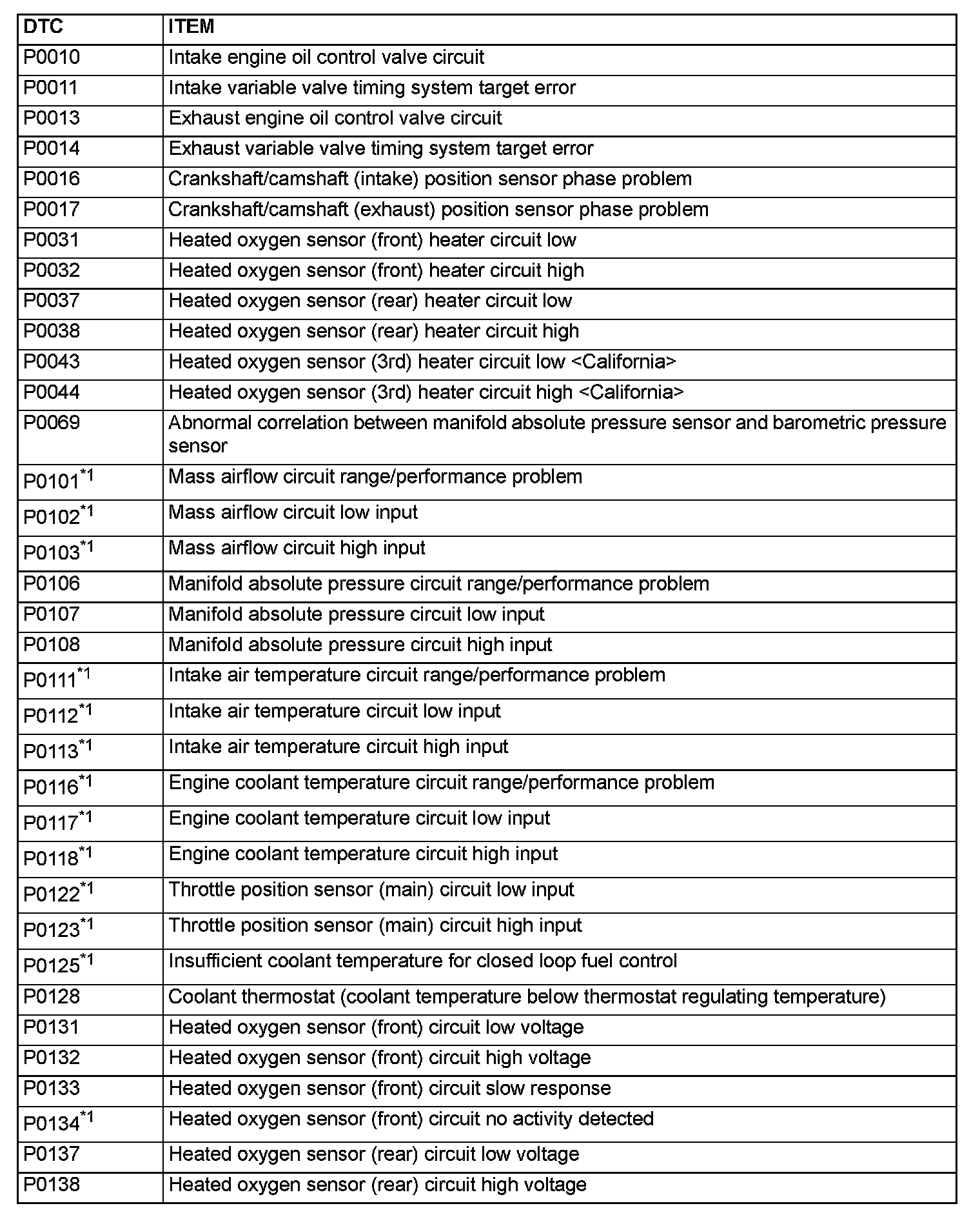 - The codes marked with a "*2" in the diagnosis code number column have the following two conditions for illuminating the Malfunction Indicator Lamp (SERVICE ENGINE SOON or Check Engine Lamp).