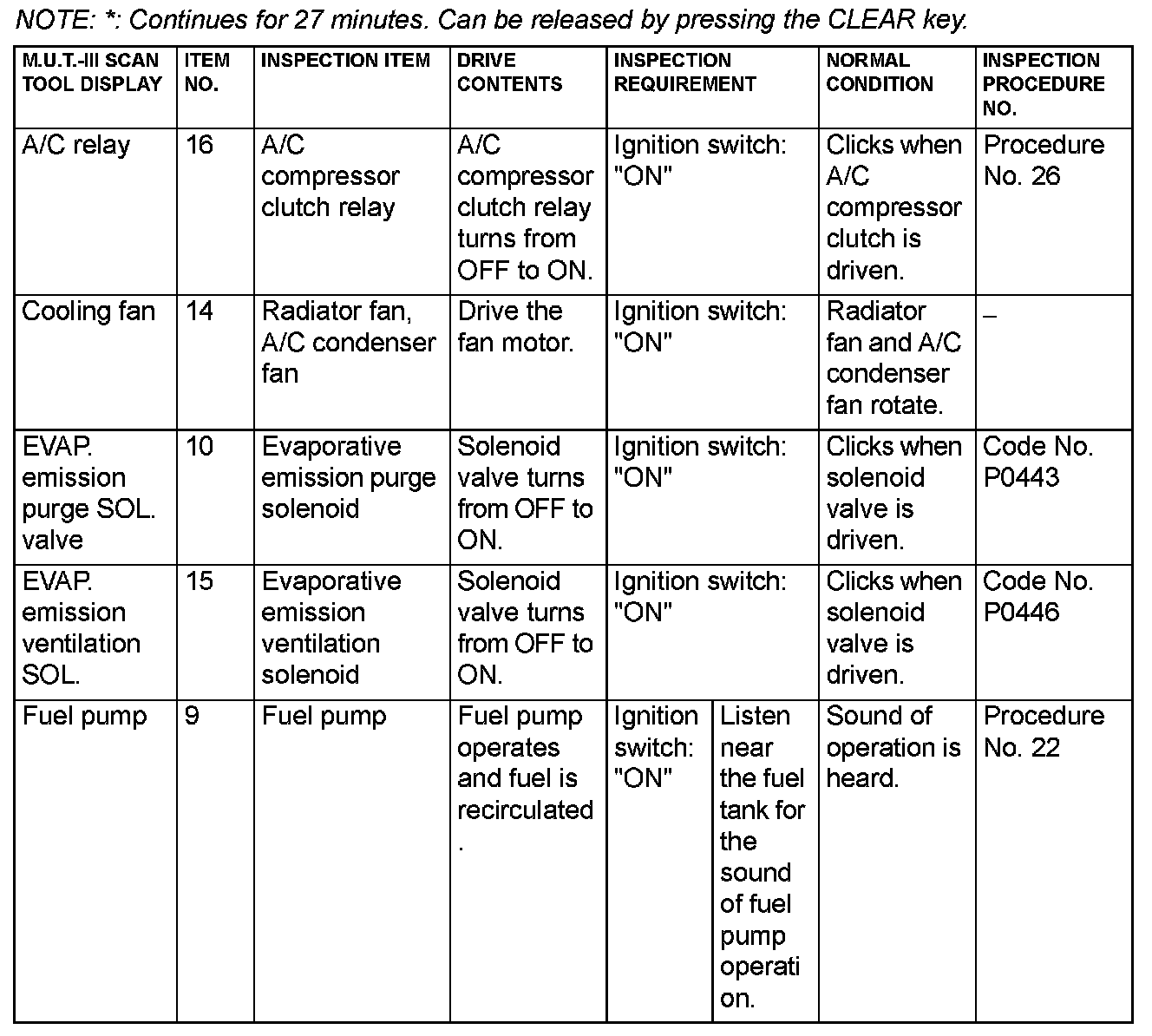 Actuator Test Reference Table (Part 1):