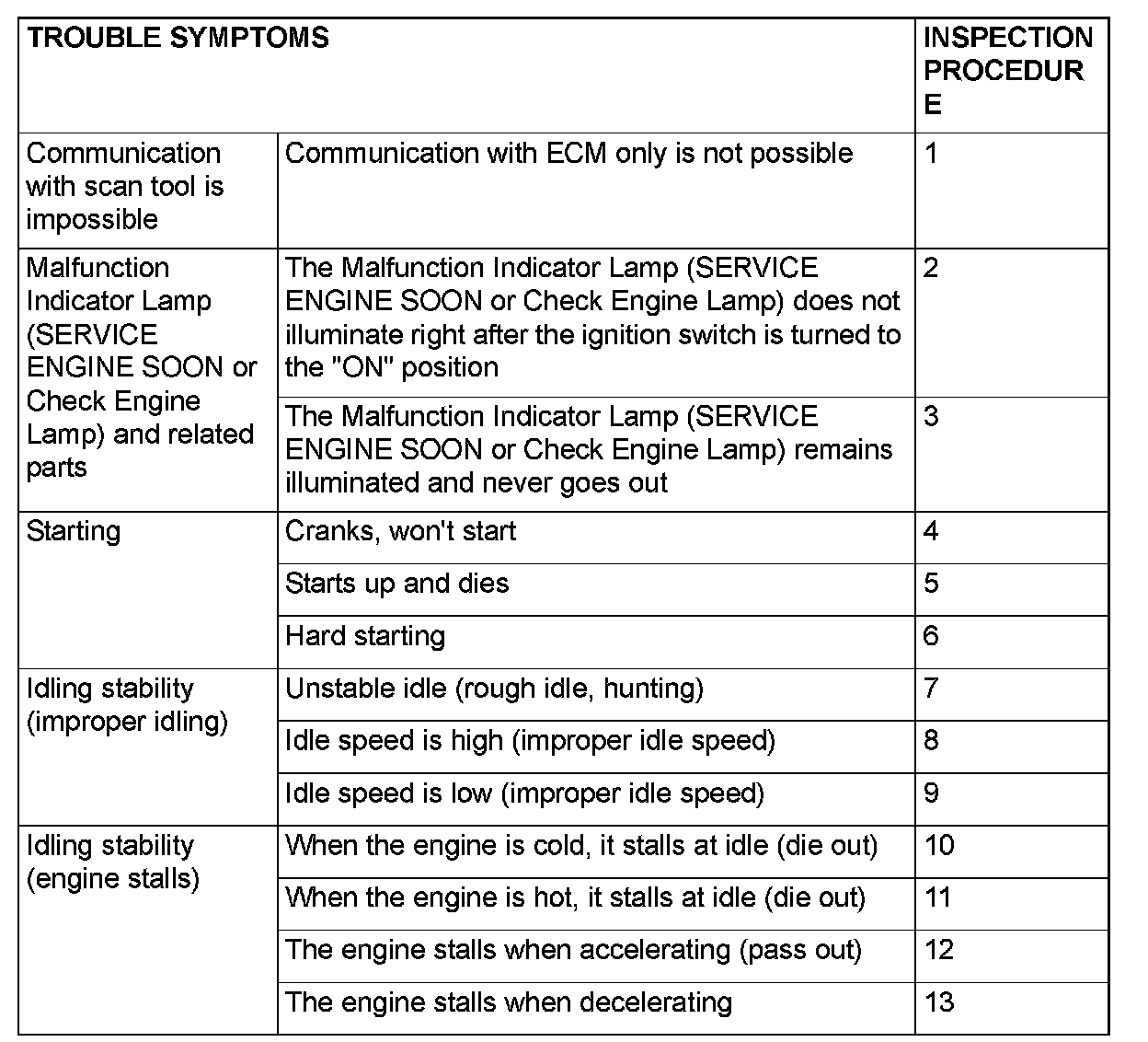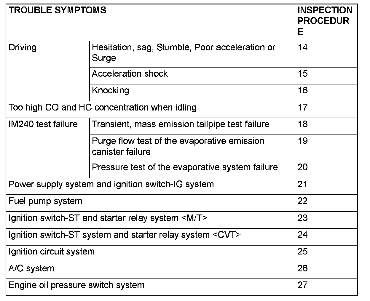 Trouble Symptom Chart (Part 1):