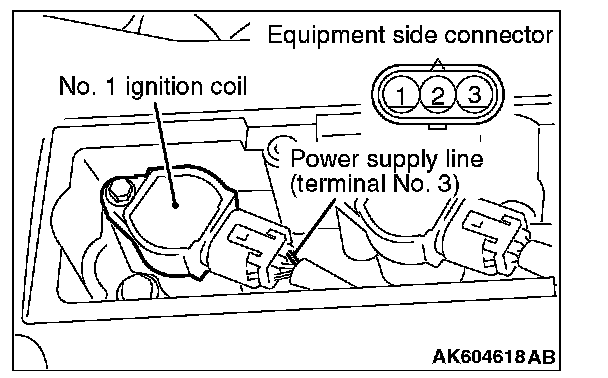 3. Set the timing light to the power supply line (terminal No. 3) of the ignition coil No. 1.