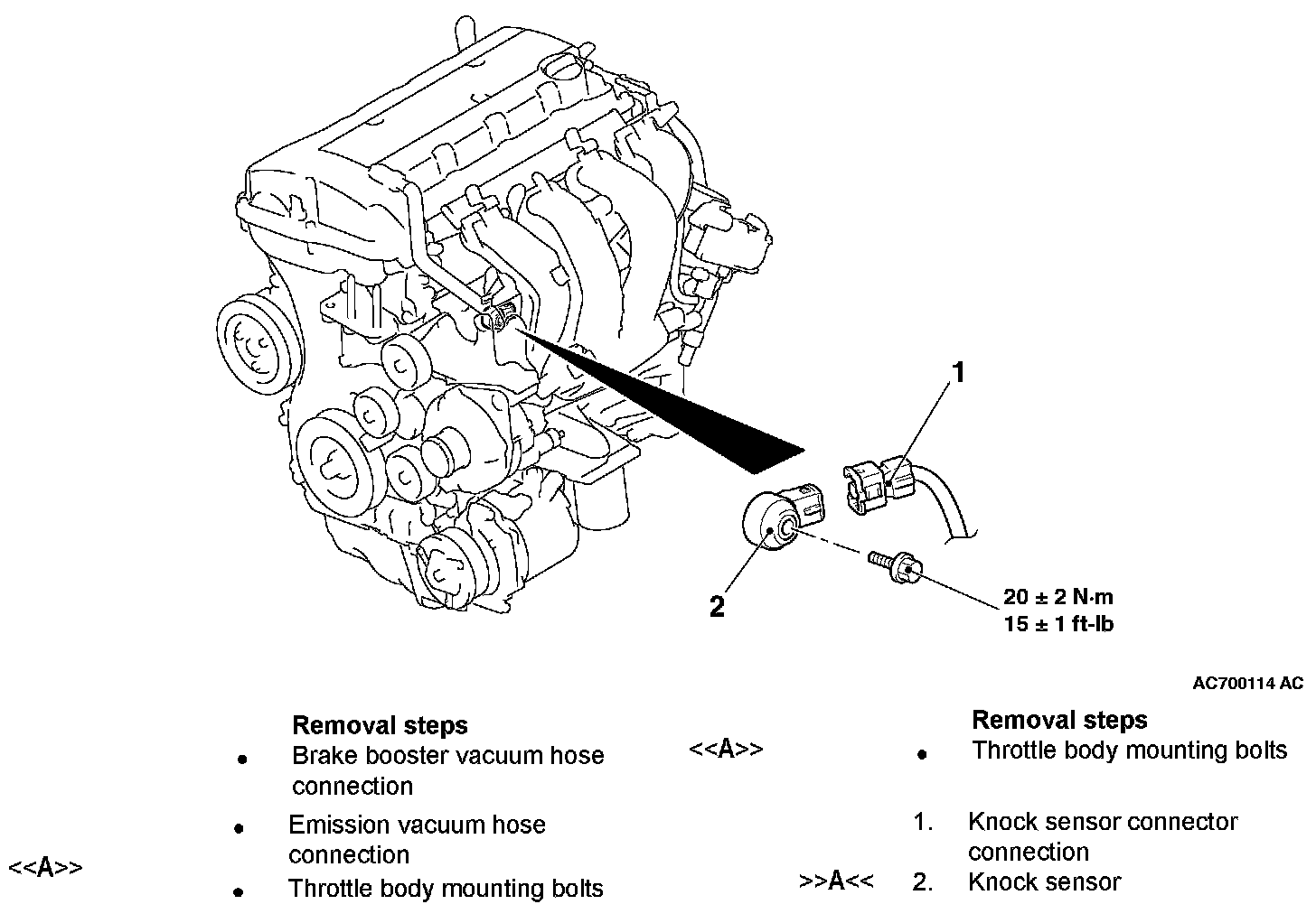 KNOCK SENSORREMOVAL AND INSTALLATION [2.0L ENGINE NON-TURBO, 2.4L ENGINE]