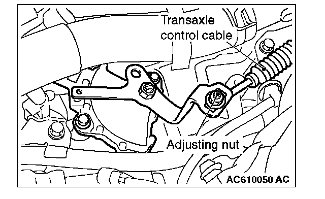 5. Use the adjusting nut to tighten the transaxle control cable to the specified torque.