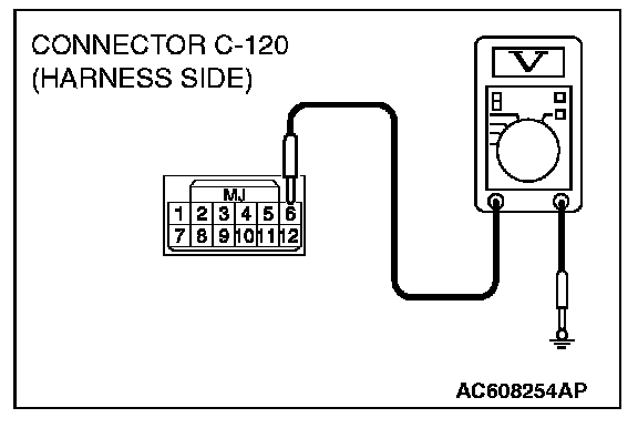 3. Measure the voltage between terminal 6 and ground.