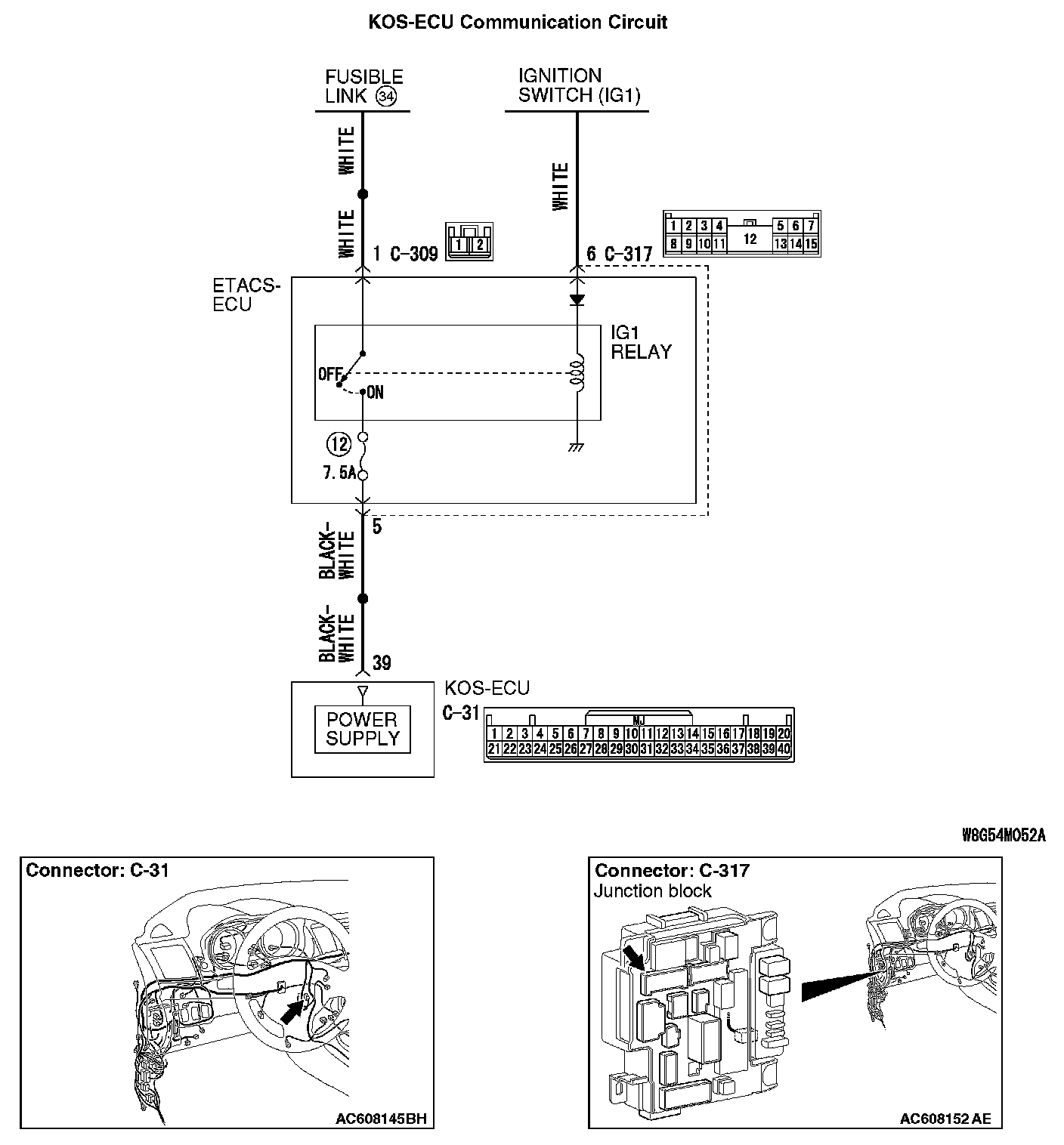 STEP 3. Check the wiring harness between KOS-ECU connector C-31 (terminal No.39) and ETACS-ECU connector C-317 (terminal No.5).