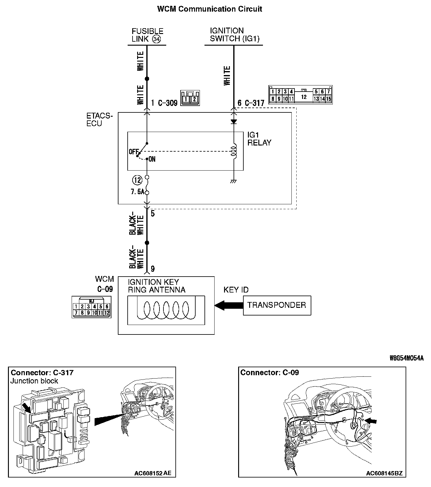Q: Is ETACS-ECU connector C-317 and WCM connector C-09 in good condition?