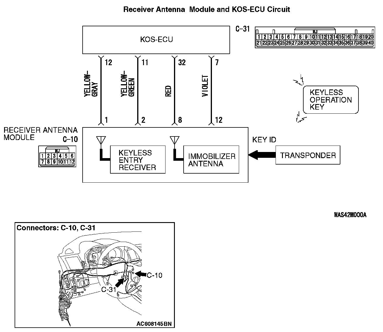 Q: Is the receiver antenna module connector C-10 and KOS-ECU connector C-31 in good condition?