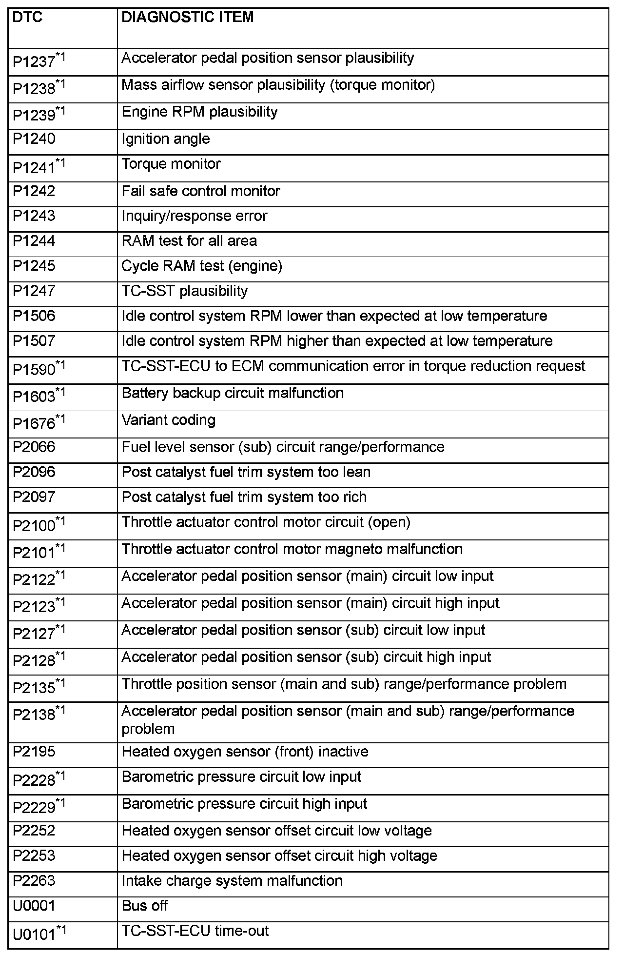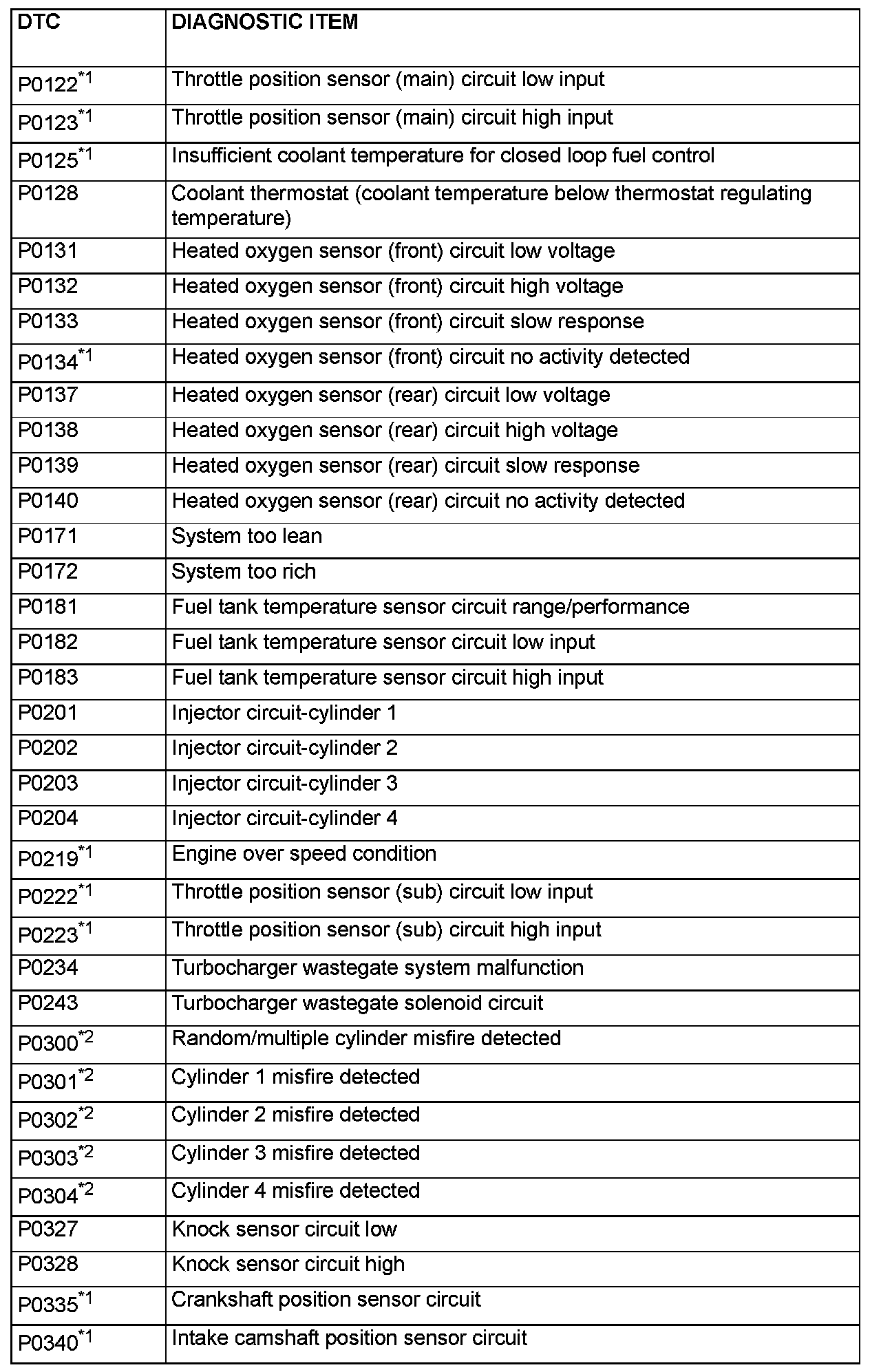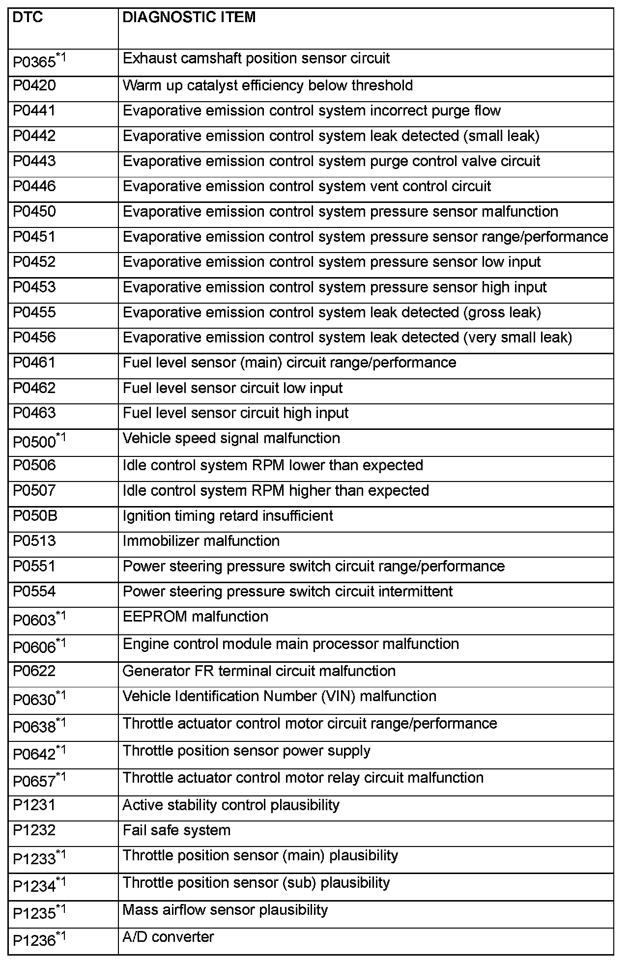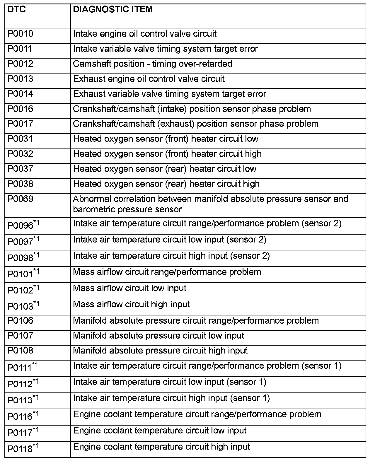 - After the ECM detects a malfunction, a diagnostic trouble code is recorded the next time the engine is started and the same malfunction is re-detected. However, for items marked with a "*1", the diagnostic trouble code is recorded on the first detection of the malfunction.