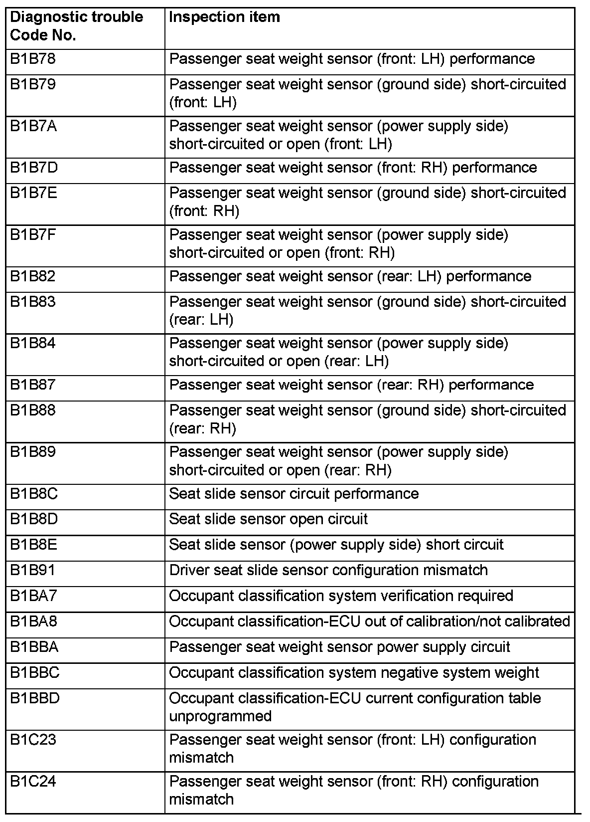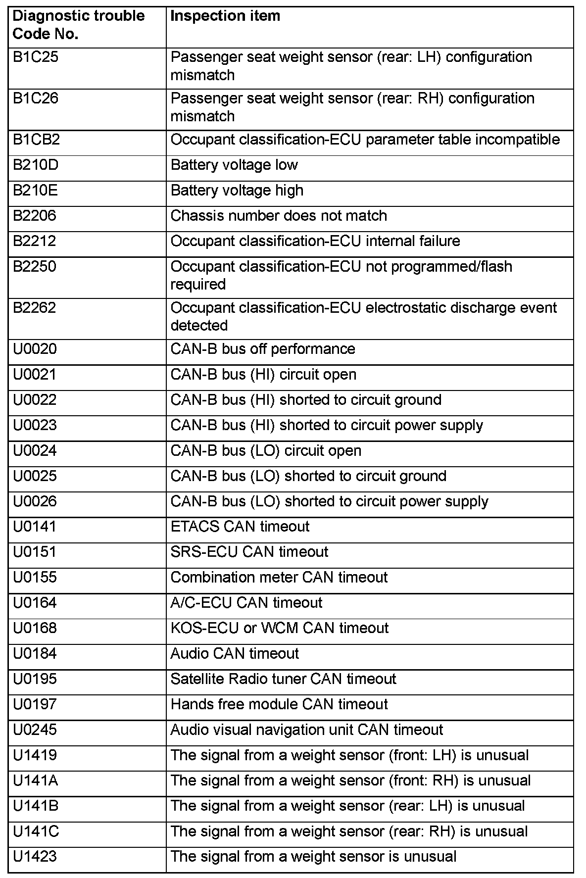 DIAGNOSTIC TROUBLE CODE CHART[Occupant classification-ECU]