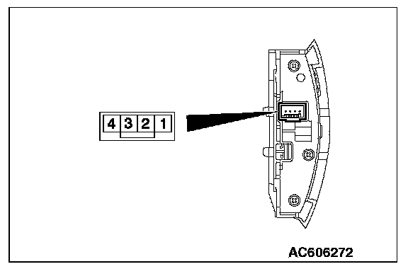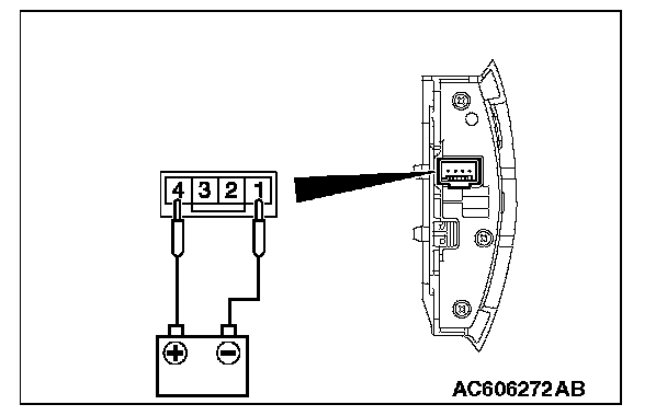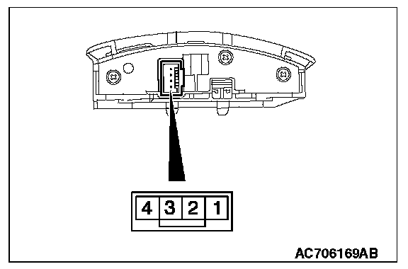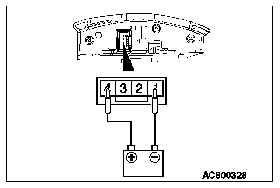 Apply the battery voltage of steering wheel voice control switch connector terminal No. 4 and 1, and check if the steering wheel audio remote control switch illuminates.