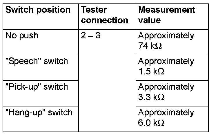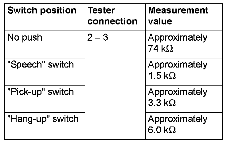 HANDS FREE CELLULAR PHONE SYSTEMSTEERING WHEEL VOICE CONTROL SWITCH CONTINUITY CHECK [EXCEPT RALLIART]