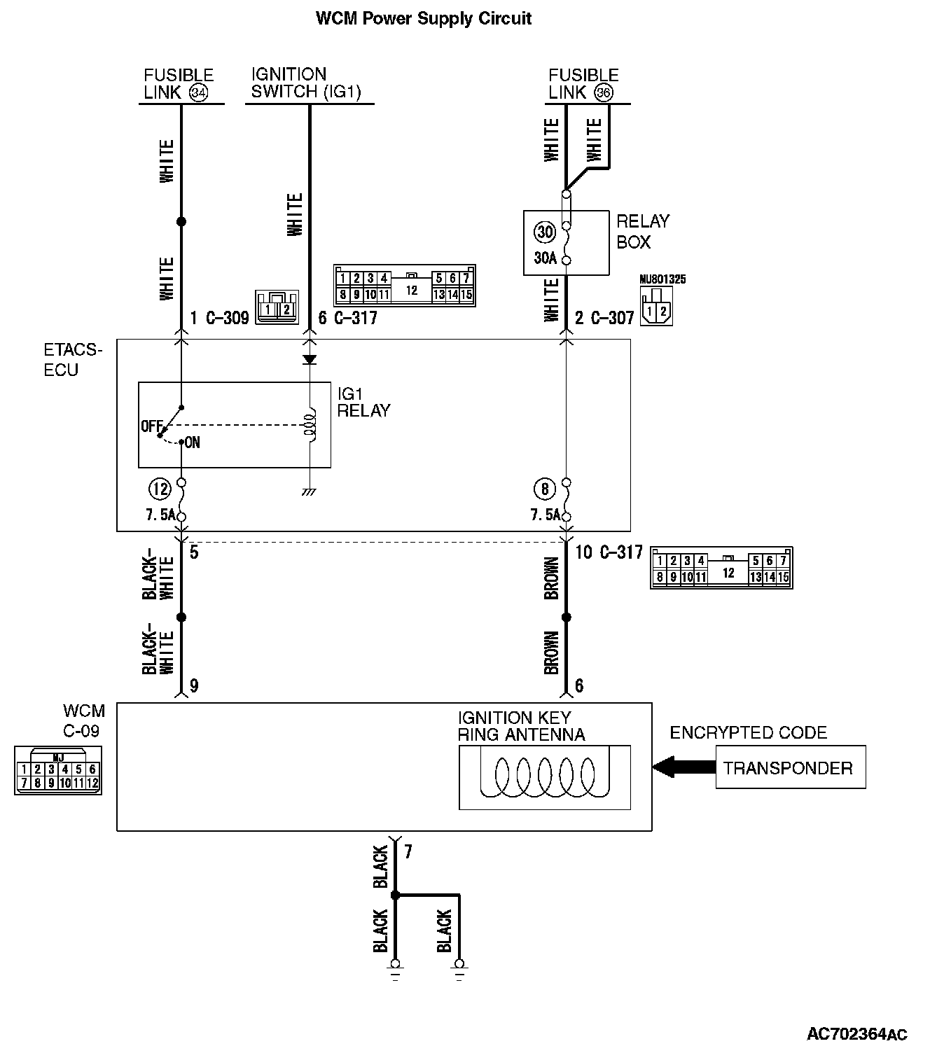 2. Check the wiring harness between WCM connector C-09 (terminal No.6) and ETACS-ECU connector C-317 (terminal No.10)