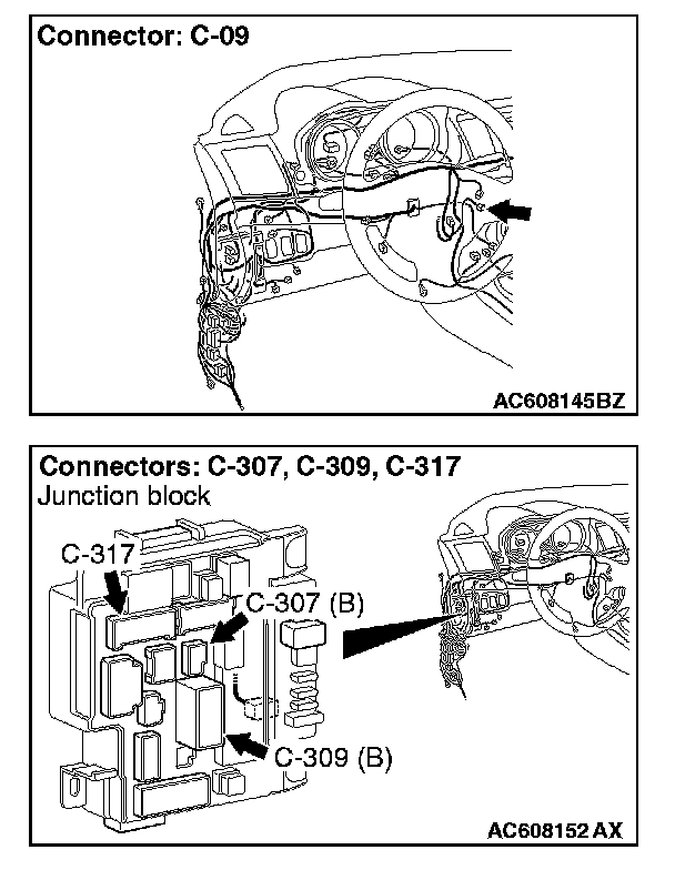 1. Disconnect WCM connector C-09 and ETACS-ECU connector C-317, and check the wiring harness.