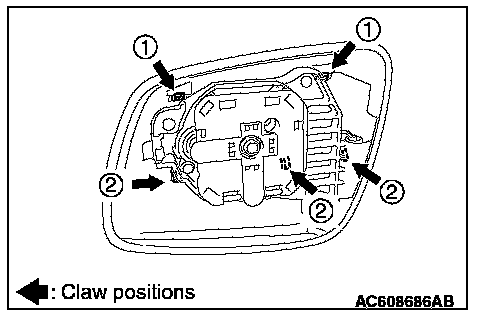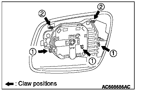 Remove the door mirror outer cover by disengaging the claws in the numerical order of the illustration from the mirror body side.