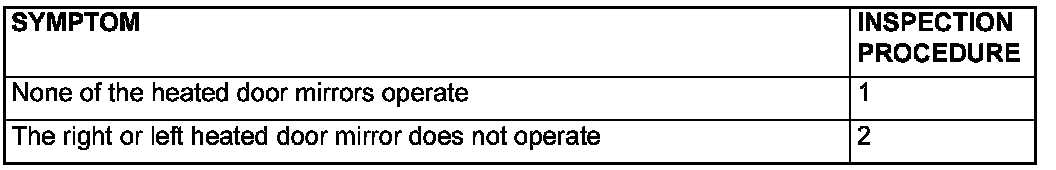 INSPECTION PROCEDURE 1: None of the Heated Door Mirrors Operate