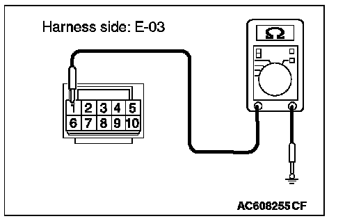 STEP 10. Check the ground circuit between door mirror (RH) connector E-03 and ground for open circuit. Measure the resistance at door mirror (RH) connector E-03.