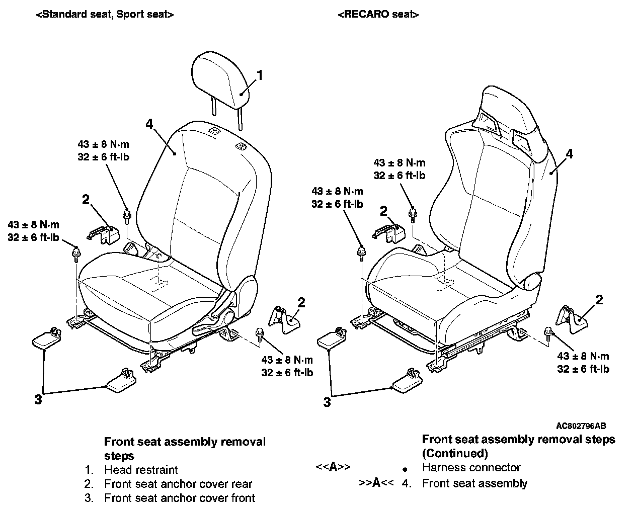 FRONT SEAT ASSEMBLYREMOVAL AND INSTALLATION