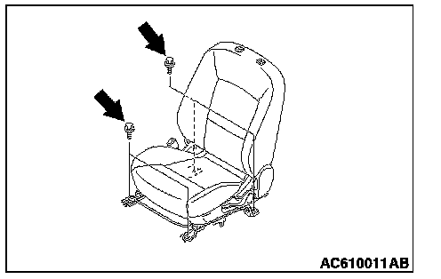 1. Temporarily tighten the bolts in all mounting locations shown in the illustration with no load applied to the front seat cushion and check the operation of the seat slide.