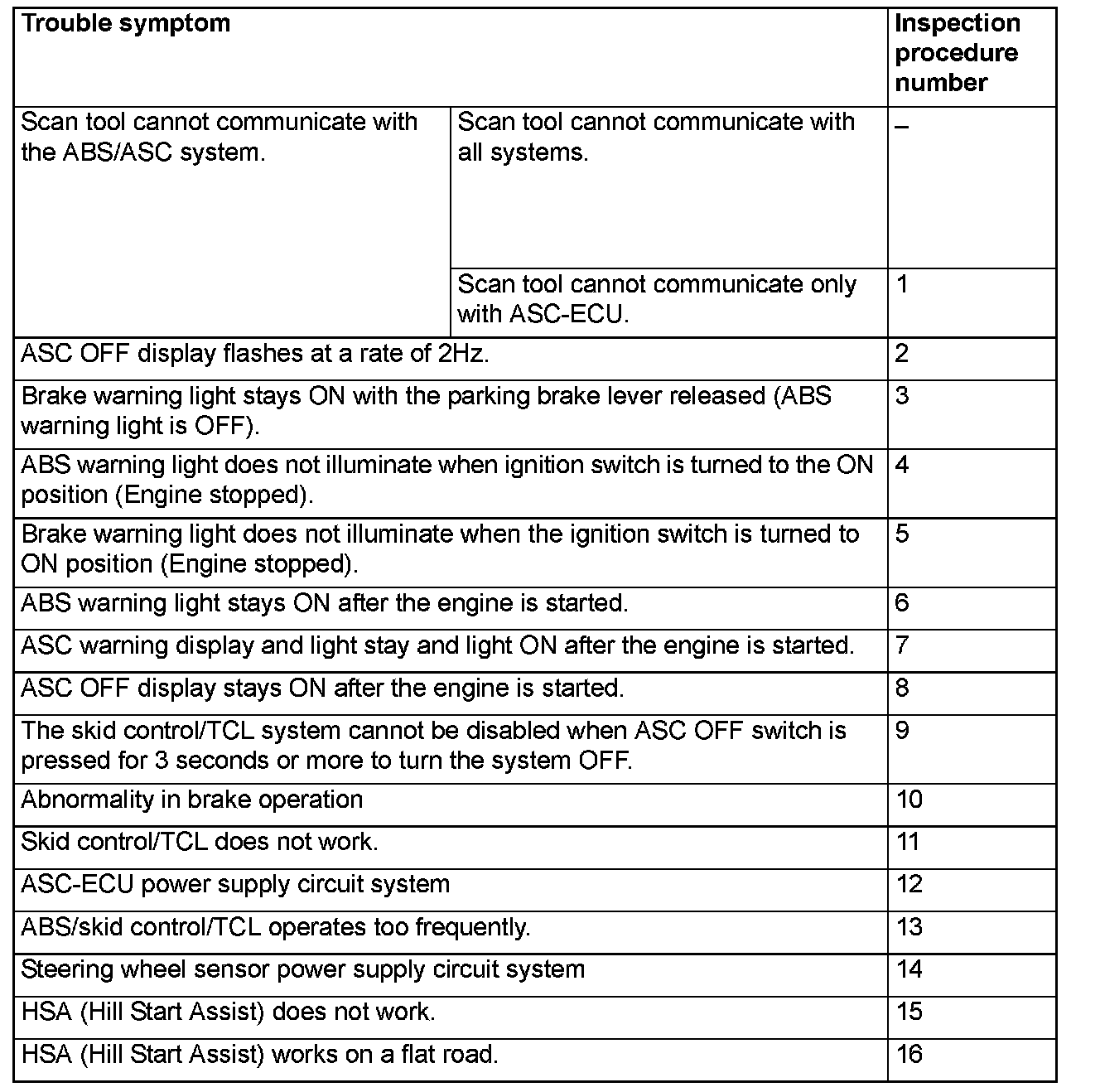 ^ ABS may operate in the following conditions without hard braking: Low mu road surface, high-speed turn, and bumpy road surface. When asking the customers, confirm that they have/have not encountered ABS operation in corresponding conditions.