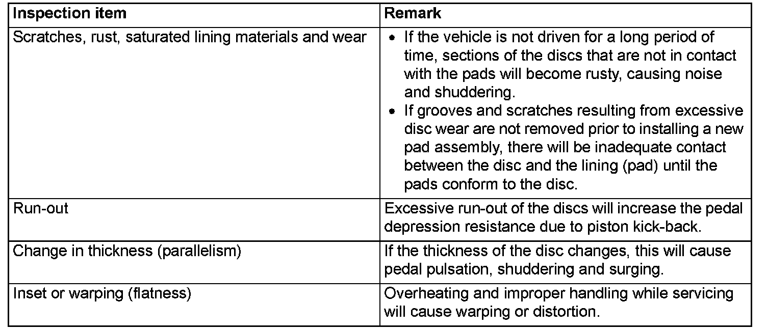 Disc brakes must be kept within the allowable service values in order to maintain normal brake operation.