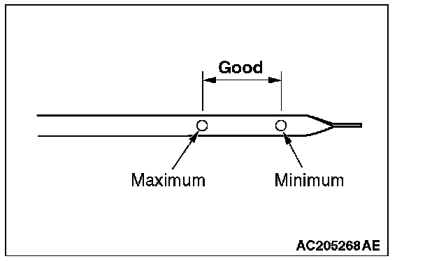 2. Pull out the engine oil dipstick, and check the engine oil level is within the marks on one side of the engine oil dipstick (engine cover side.)