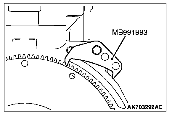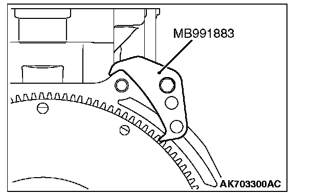 1. Use special tool MB991883 to secure the flywheel.