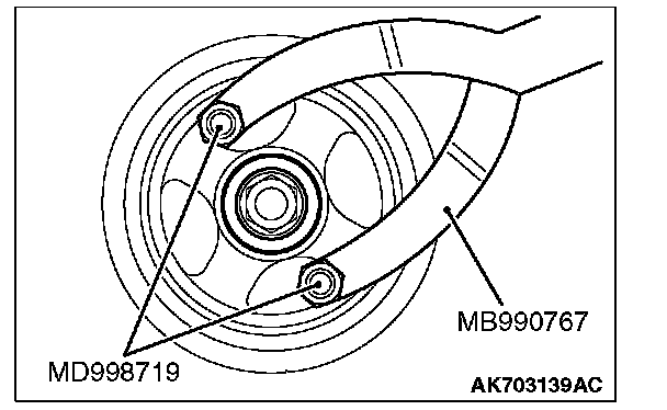 Use the special tool MB990767 and MD998719 to insert the pin into the crankshaft pulley hole and prevent it from rotating.