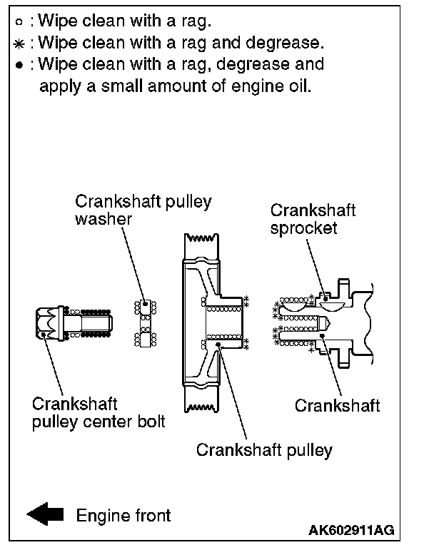 2. Wipe off the dirt on the crankshaft pulley washer and on the thread hole of the crankshaft using a rag.