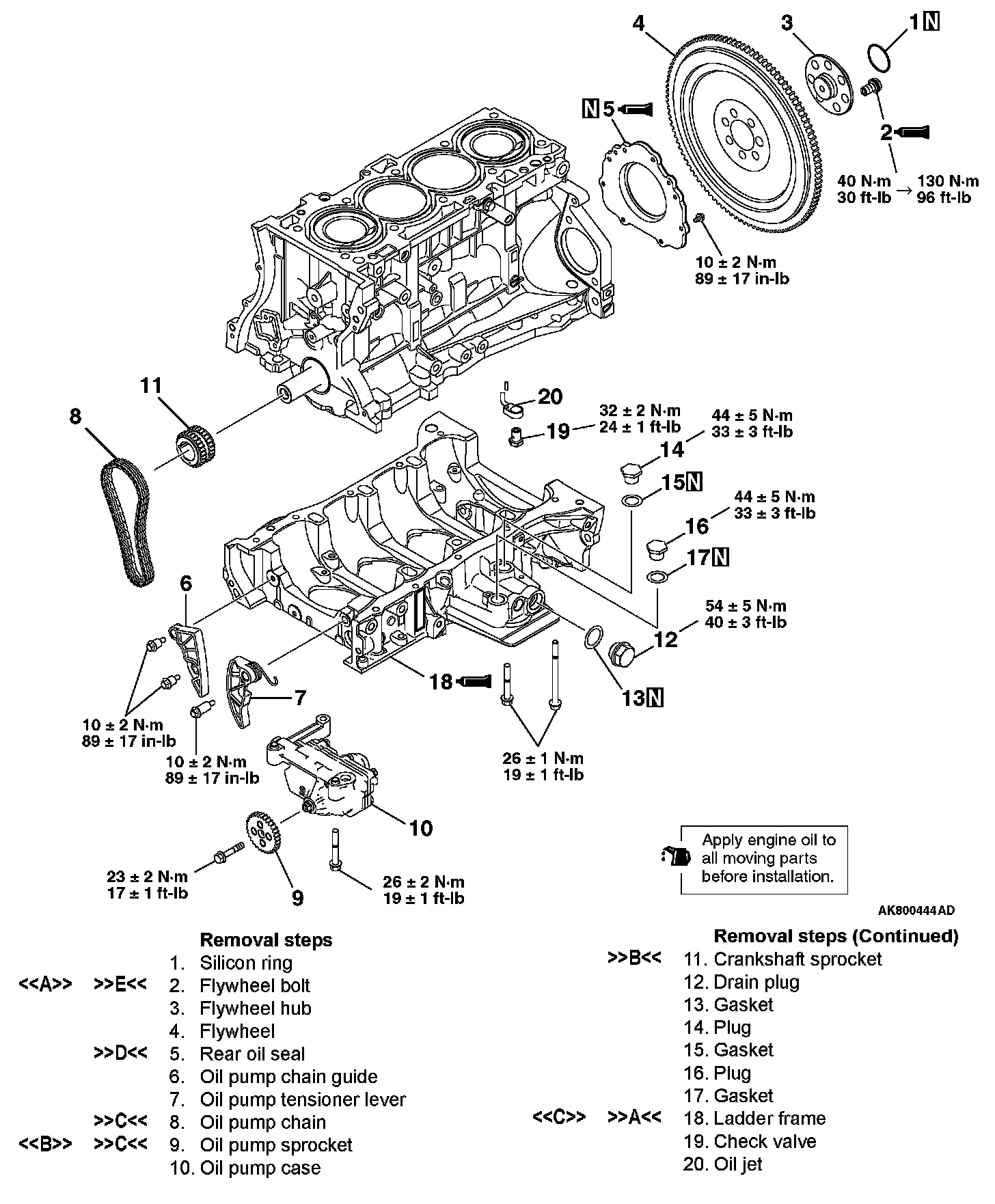 Specified torque: 10 ± 2 Nm (89 ± 17 ft-lb)