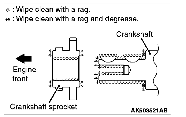 1. Wipe off the dirt on the crankshaft sprocket and the crankshaft using a rag, and then remove the grease from the portion shown in the illustration.