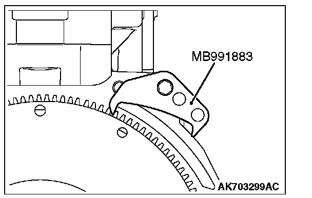 1. Use special tool MB991883 to secure the flywheel.