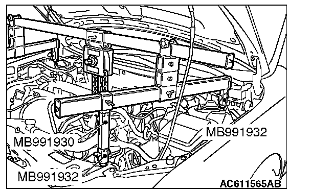 1) Assemble the special tool MB991928. Set the following parts on the base hanger.