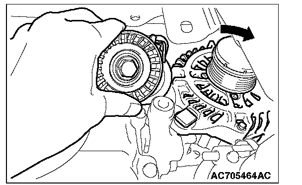 Loosen the mounting bolt of generator assembly lower part, and remove the mounting bolt of generator assembly upper part. Slide the generator assembly, and remove the auto-tensioner.