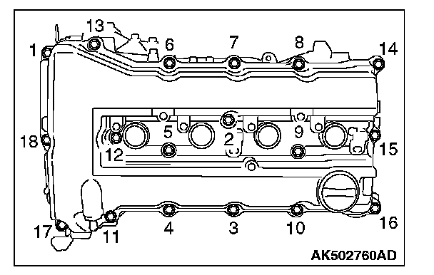 10. Installing the cylinder head cover, tighten the tightening bolt according to the following procedures.