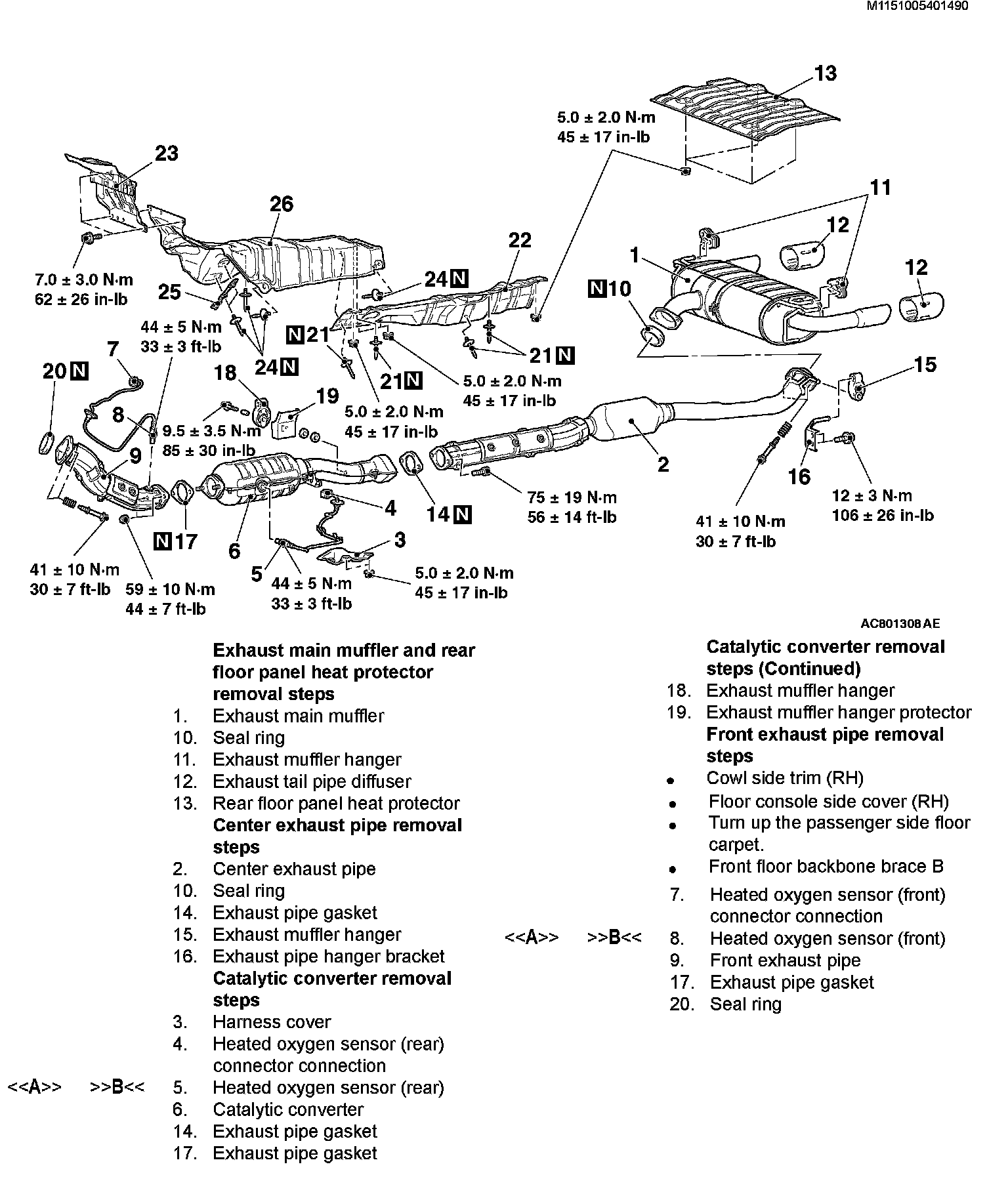 EXHAUST PIPE, MAIN MUFFLER AND CATALYTIC CONVERTER [2.0L ENGINE Turbo]REMOVAL AND INSTALLATION