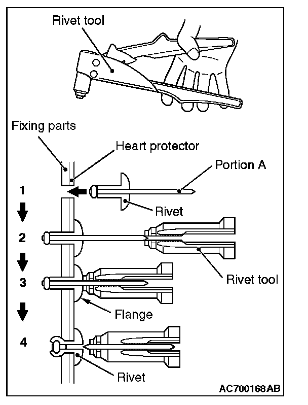 4. Thin part of portion A of the rivet will be cut off and the parts is fixed in position.