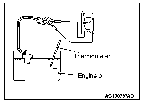2. When the oil temperature reaches the standard value, check that resistance is supplied between the terminals.